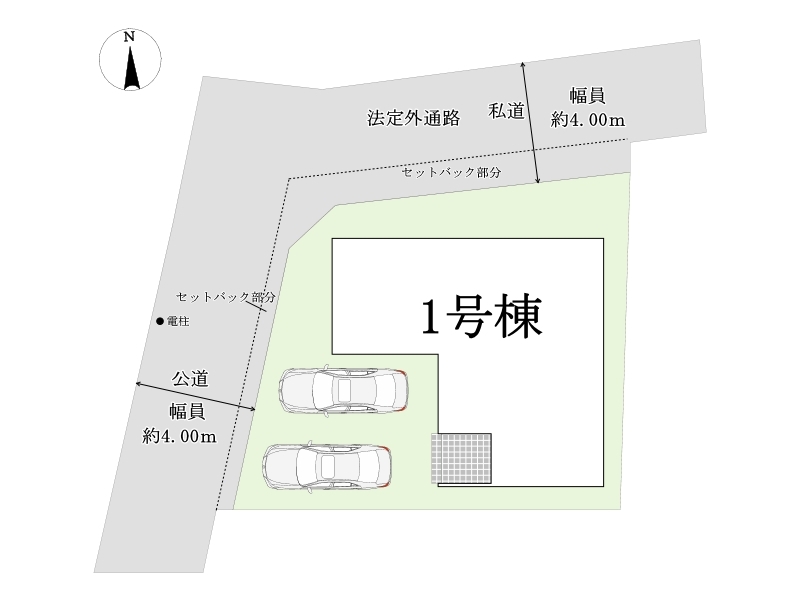 | 権利種類 | 所有権 | 接道 | 西側4M公道に接道 北側4M私道に接道 |