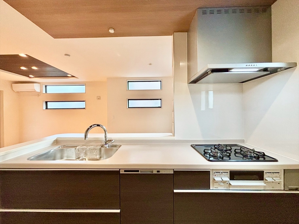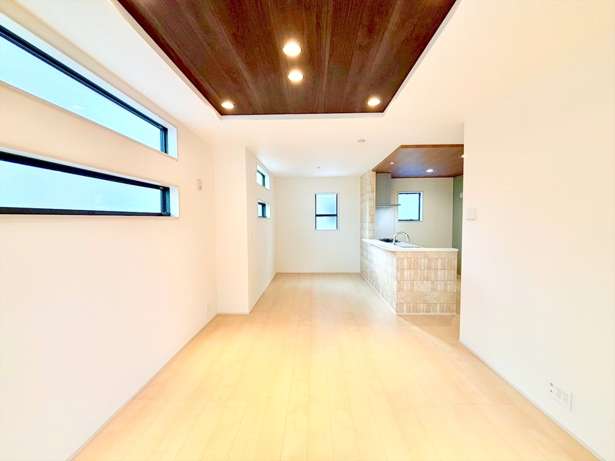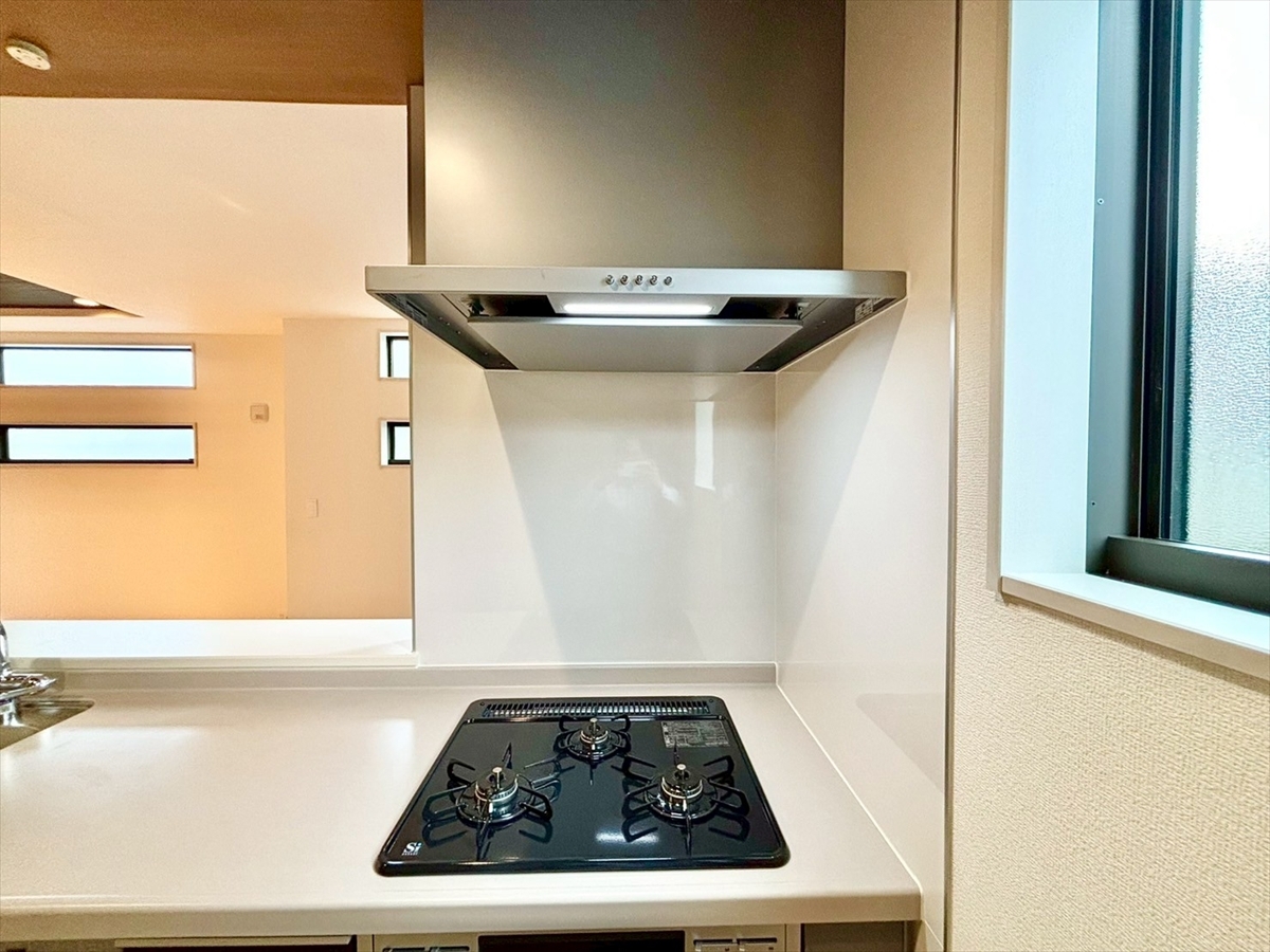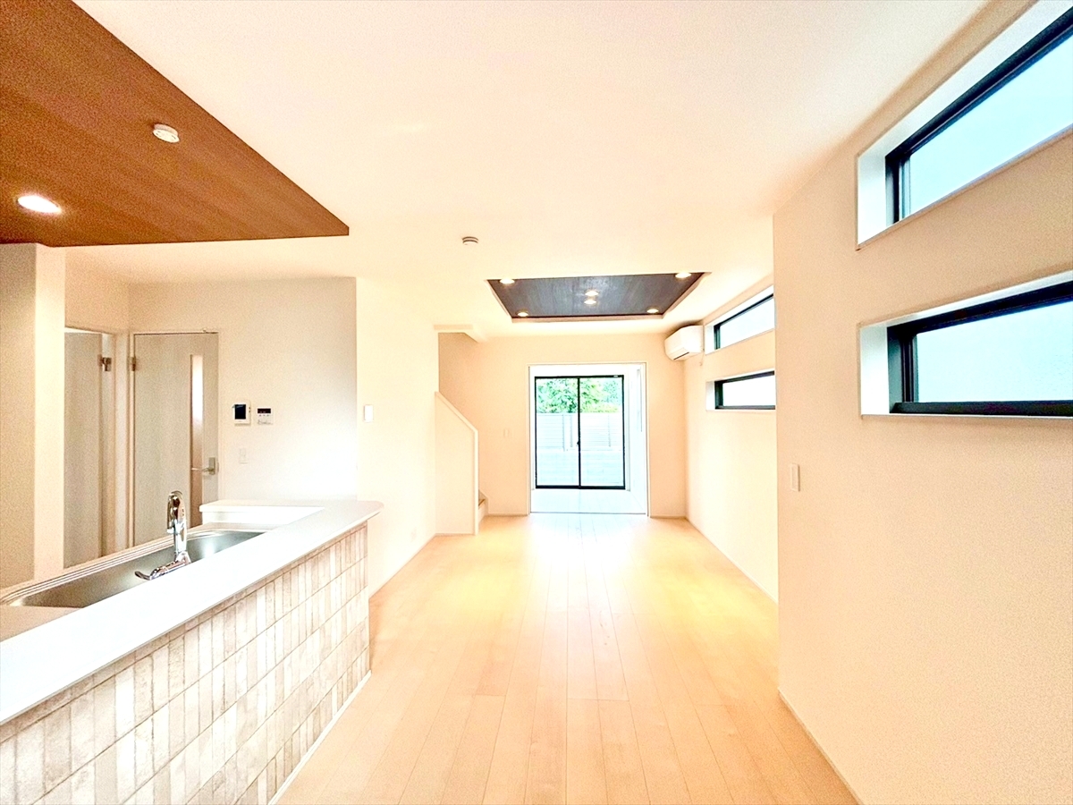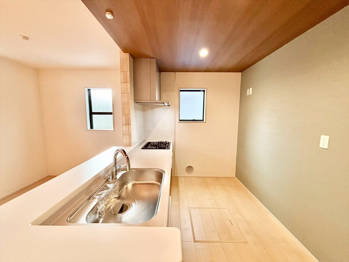 キッチンからリビング全体を見渡せるので、小さなお子様がいらしても様子を見ながら家事ができますね■府中市若松町3丁目 新築戸建て■