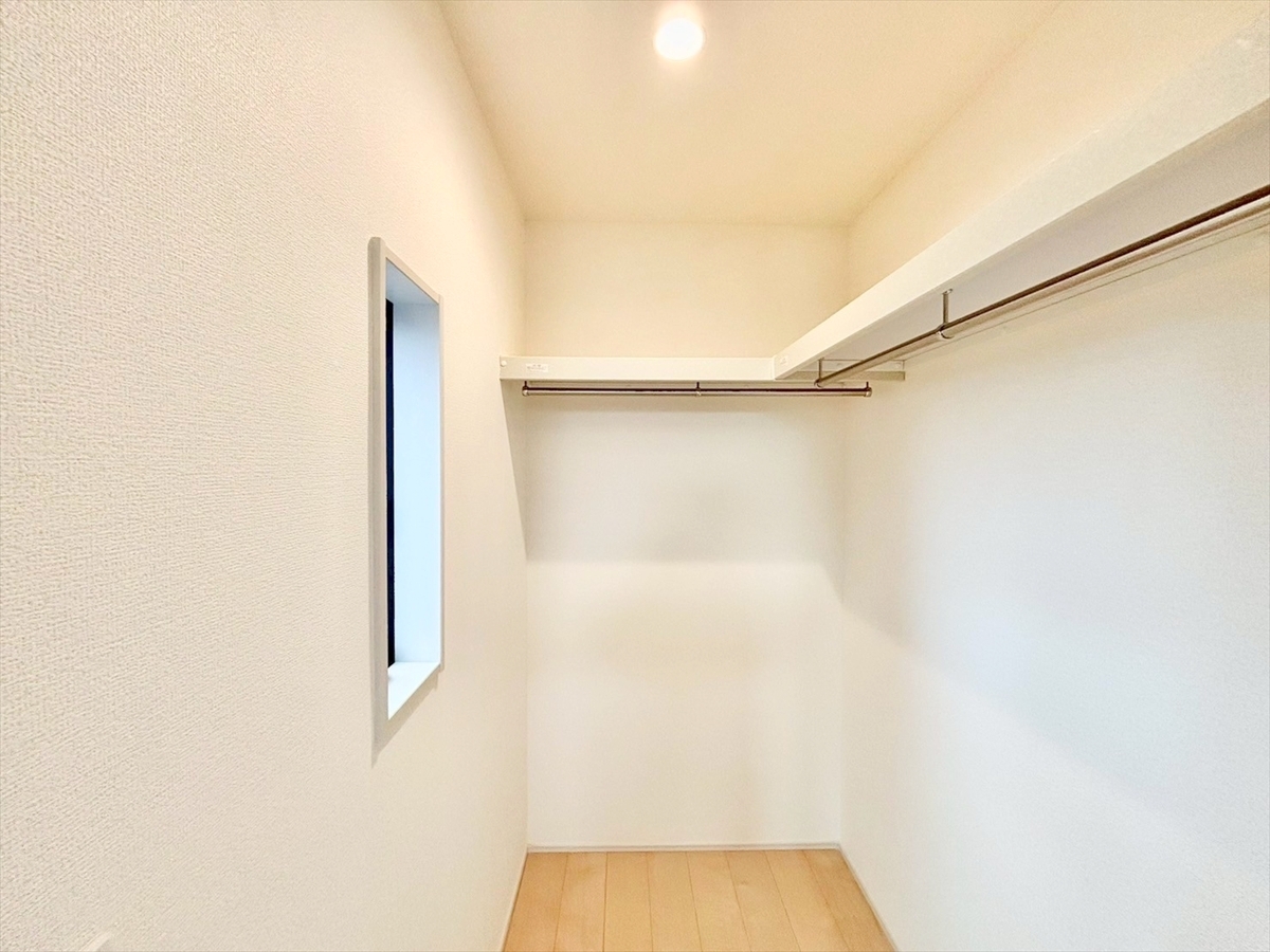 ひと目で収納物を確認できるウォークインクロゼットは、ゆとりの広さを備えた大型収納。数多くの衣類に加え、足元には引出しや衣装箱、シューズボックスなども収納することができます。■府中市若松町3丁目 新築戸建て■