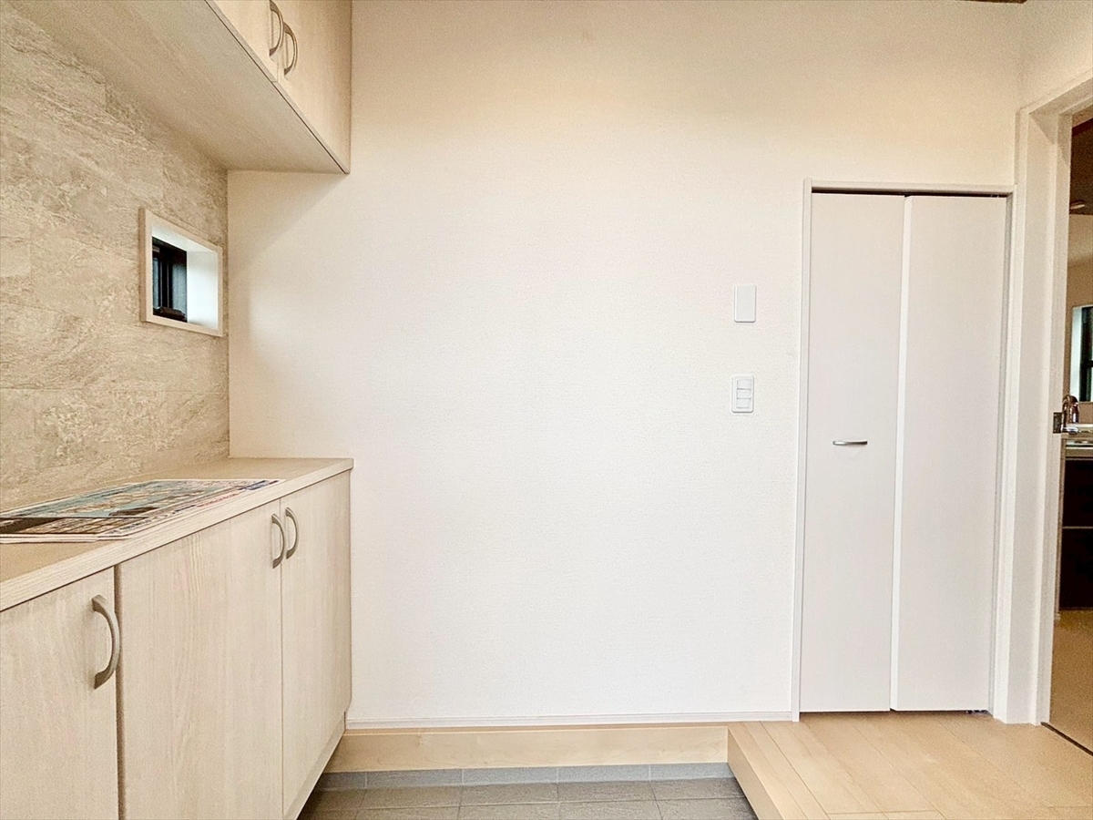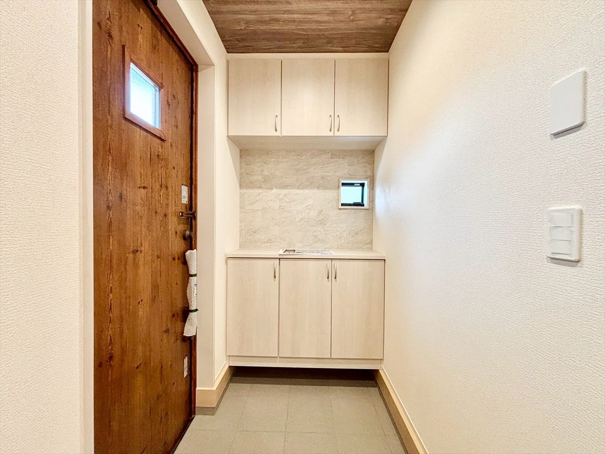 扉をあけてエントランスにはいるとそこにはスペースの確保されたホールがお客様を出迎えてくれます!シューズボックスも完備。■府中市若松町3丁目 新築戸建て■