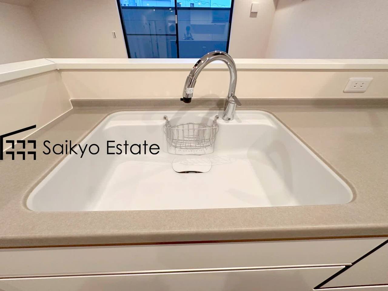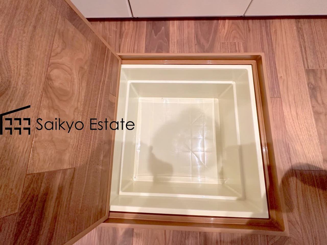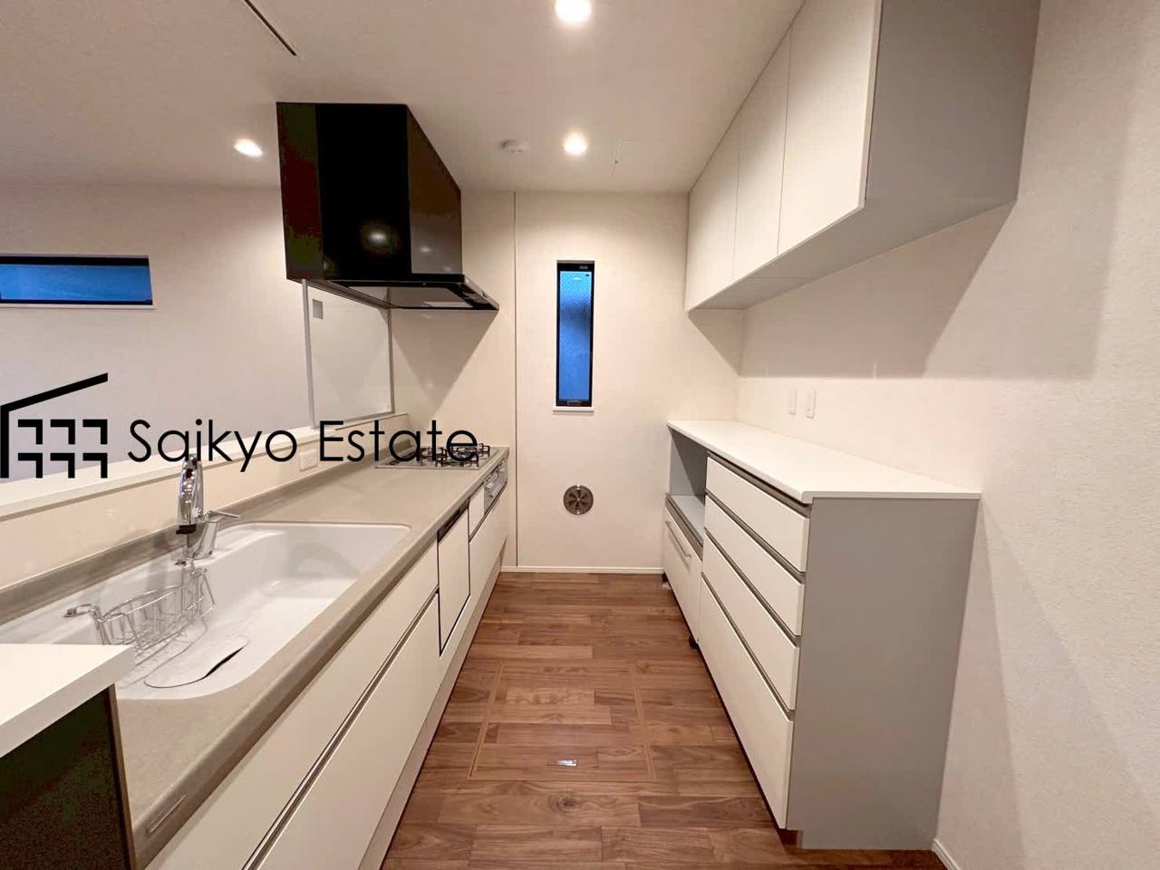 キッチンスペースにはカップボードが設置されておりますので、合うサイズの物を購入する手間もなく、キッチン全体で統一感がございます。