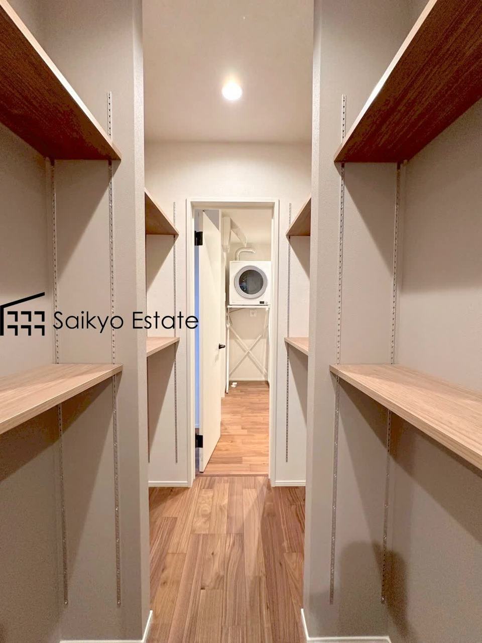 キッチンからパントリーを通り、洗面室へと移動ができますので、洗濯時の移動がスムーズです。家事の負担を軽減してくれます。