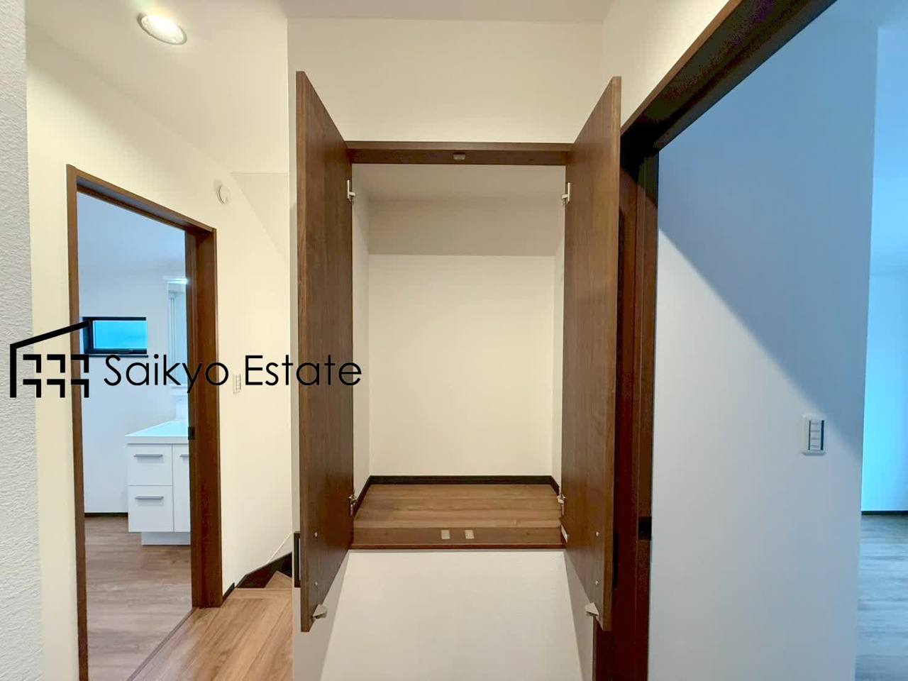 2階ホール部分には階段上を利用した収納スペースがございます。日用品や使用頻度の低い物などの収納として使える便利な空間です。