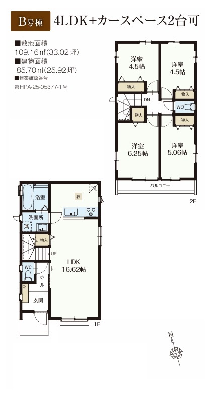 | 間取 | 4LDK (LDK16.62帖、洋室6.25帖、洋室5.06帖、洋室4.5帖、洋室4.5帖) | ||