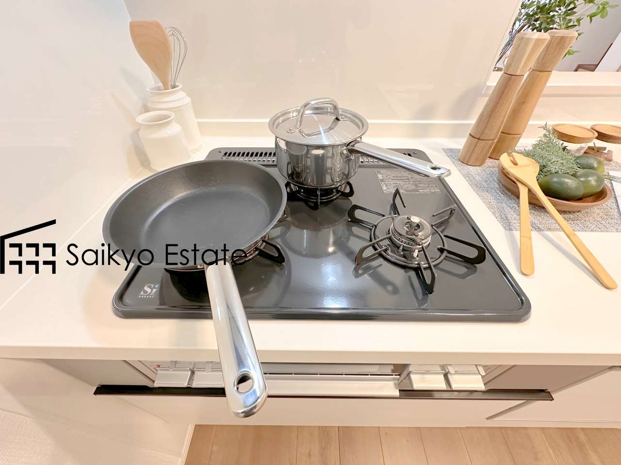 毎日の家事はより快適・便利に!ご家族様との会話を楽しみながら家事ができる対面キッチン。バックスペースは冷蔵庫やカップボードを配置しても充分な広さがあります。