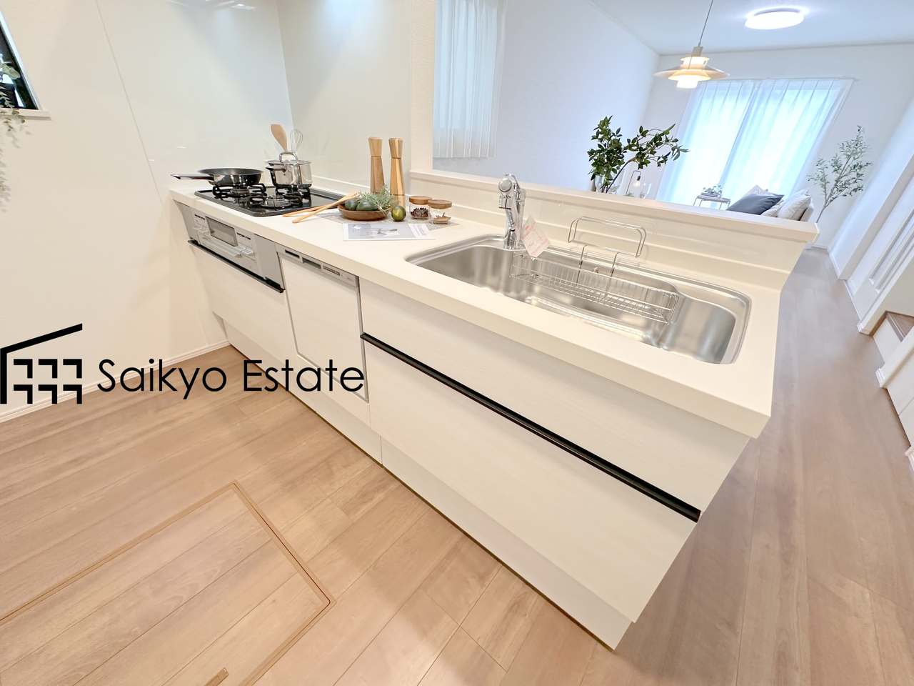 リビングにいる家族とコミュニケーションをとりながら作業が出来る人気のカウンターキッチン。お子様がリビングにいても目が届くので安心です。食洗機付きです!
