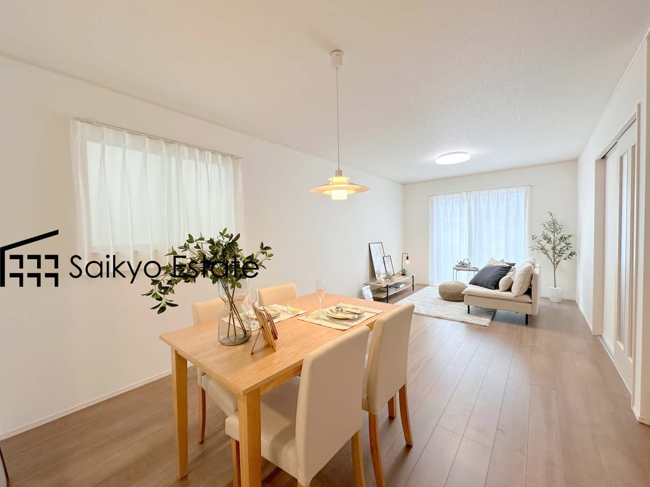 開放感と採光にこだわった広々としたLDKです。陽光いっぱいの空間で家族団らんの時間も増えそうですね!※家具類はCG加工しています。