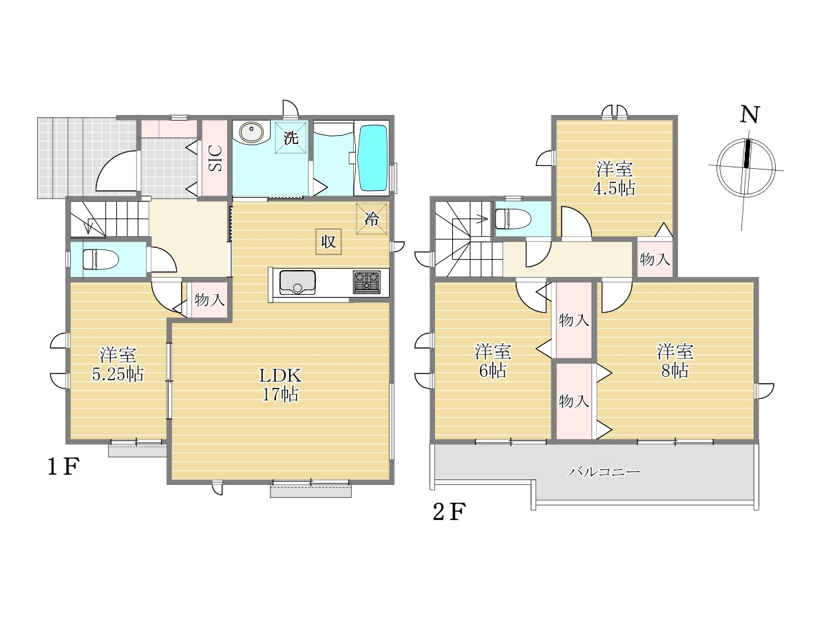 参考プラン例による間取り図は各棟、SICやWIC、パントリーなど収納豊富なこだわりのプランとなっております。是非ご参考になさってください。
