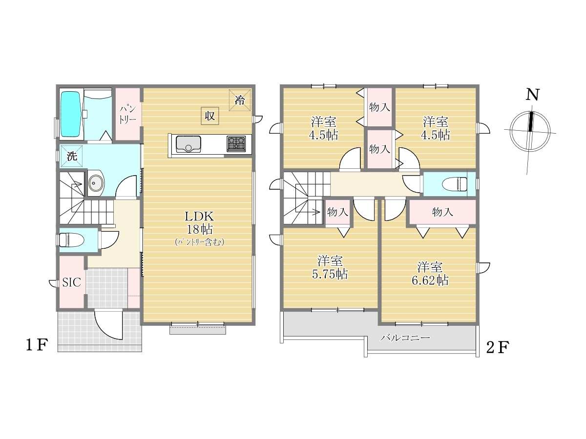 参考プラン例による間取り図は各棟、SICやWIC、パントリーなど収納豊富なこだわりのプランとなっております。是非ご参考になさってください。