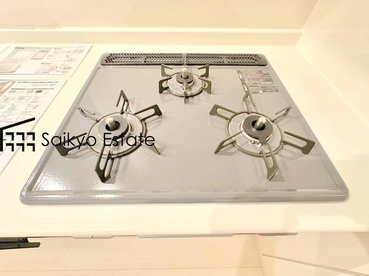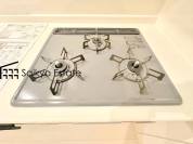 【施工例】「3口ガスコンロシステム」はたくさんの料理が同時に作れて便利な上、凹凸が少ないフラットトップなのでお掃除も楽々です。