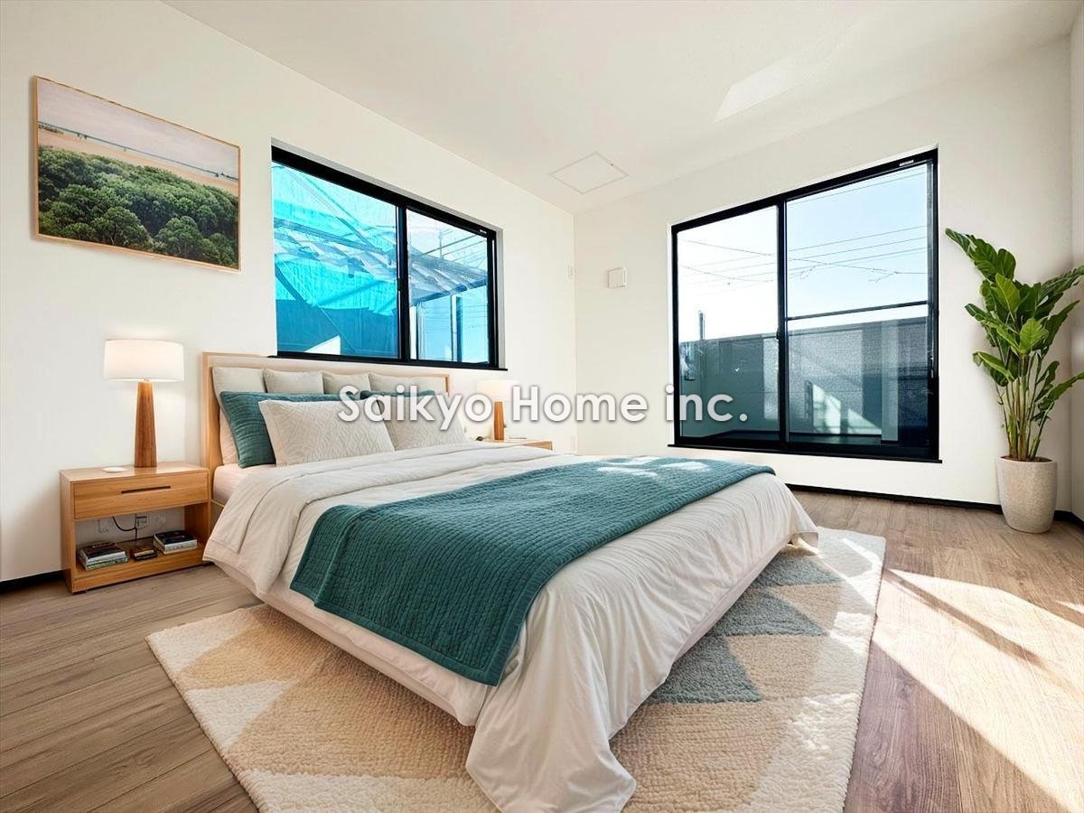 2面採光を確保した明るい室内は、風通しも良く、大変居心地の良い空間となっております。爽やかな風を感じて起きる朝は、快適生活の始まりに!※家具などはCG加工しております。■三鷹市北野2 新築一戸建て■