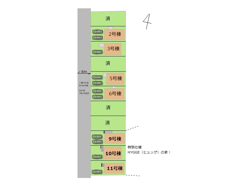 | 建築確認番号 | 第SJK-KX255904450号、他 | 駐車スペース | 2台可 |