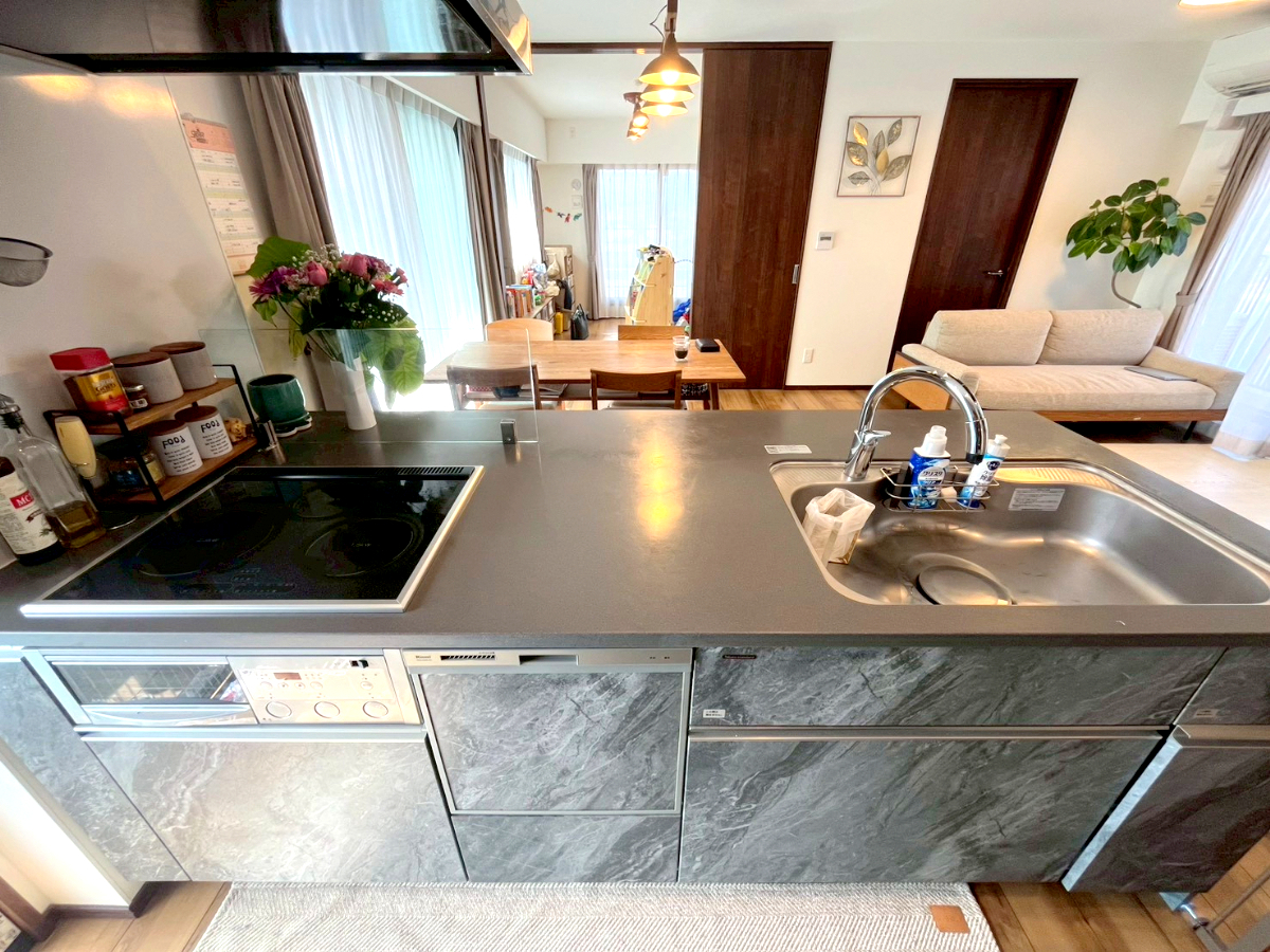 汚れ、キズ、衝撃、熱に強く清潔感のある人造大理石TOPのカウンターキッチンを採用。隙間の無いなめらか一体型シンクなのでお手入れも簡単。食器洗浄乾燥機、浄水器内蔵シャワー水栓採用 ■立川市柴崎町1 マンション■