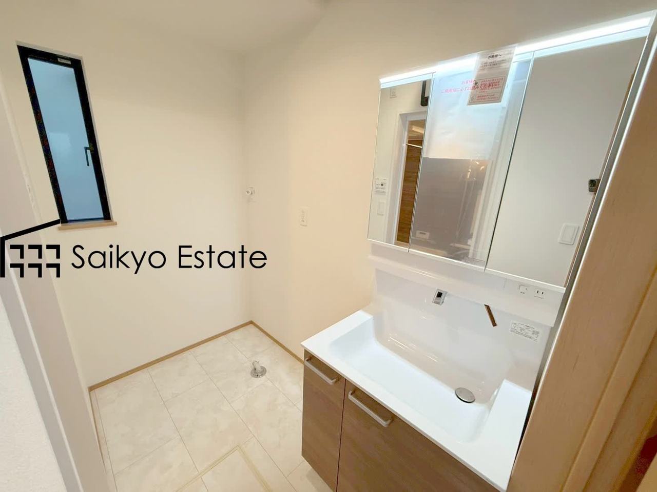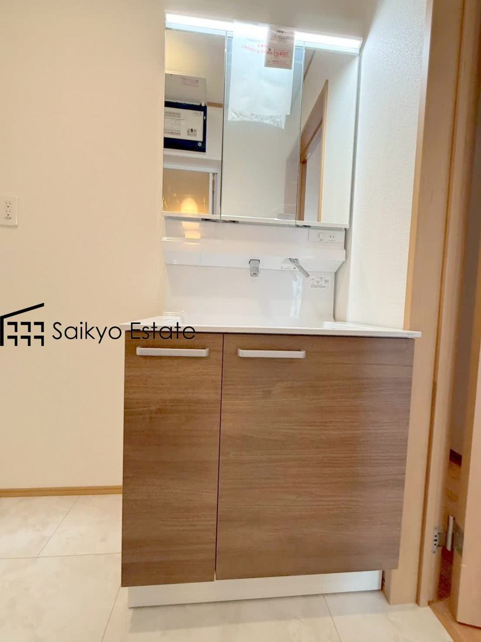 三面鏡付きの洗面化粧台を完備。収納スペースも十分ございますので、ドライヤーなどすっきりと片付きます♪