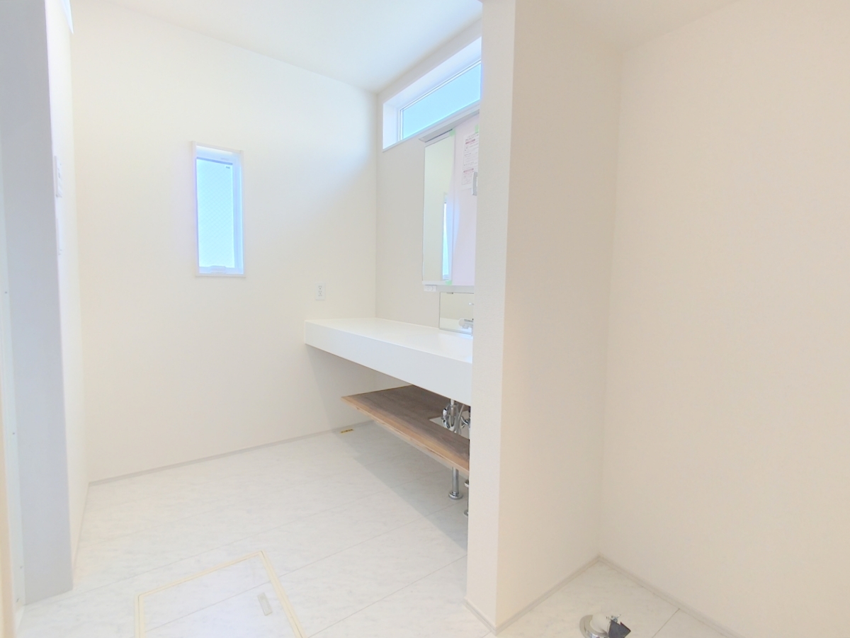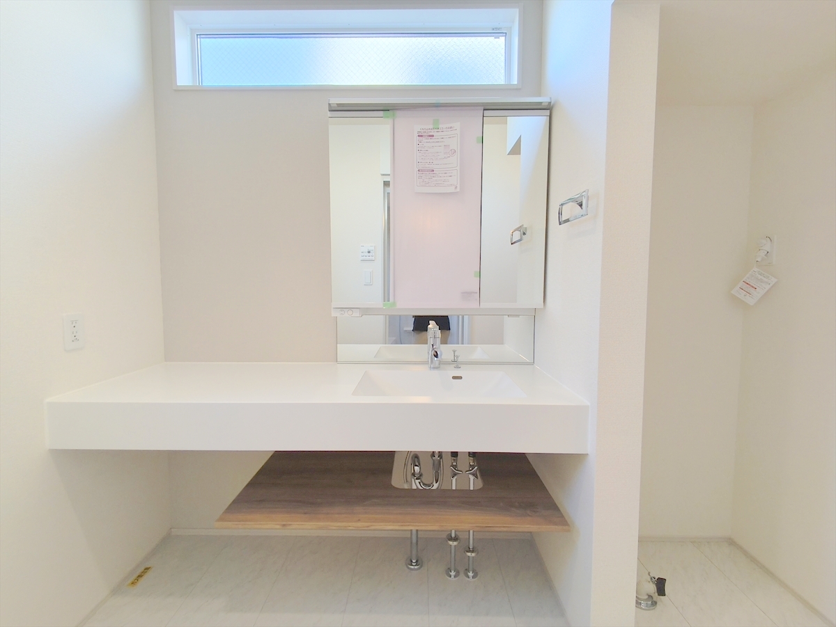 清潔なパウダールームは身だしなみチェックや肌のお手入れに最適です。収納もあり、スッキリと見映えの良い空間に拵えました。時間に余裕とゆとりを持たせます。 ■日野市栄町4 新築一戸建■