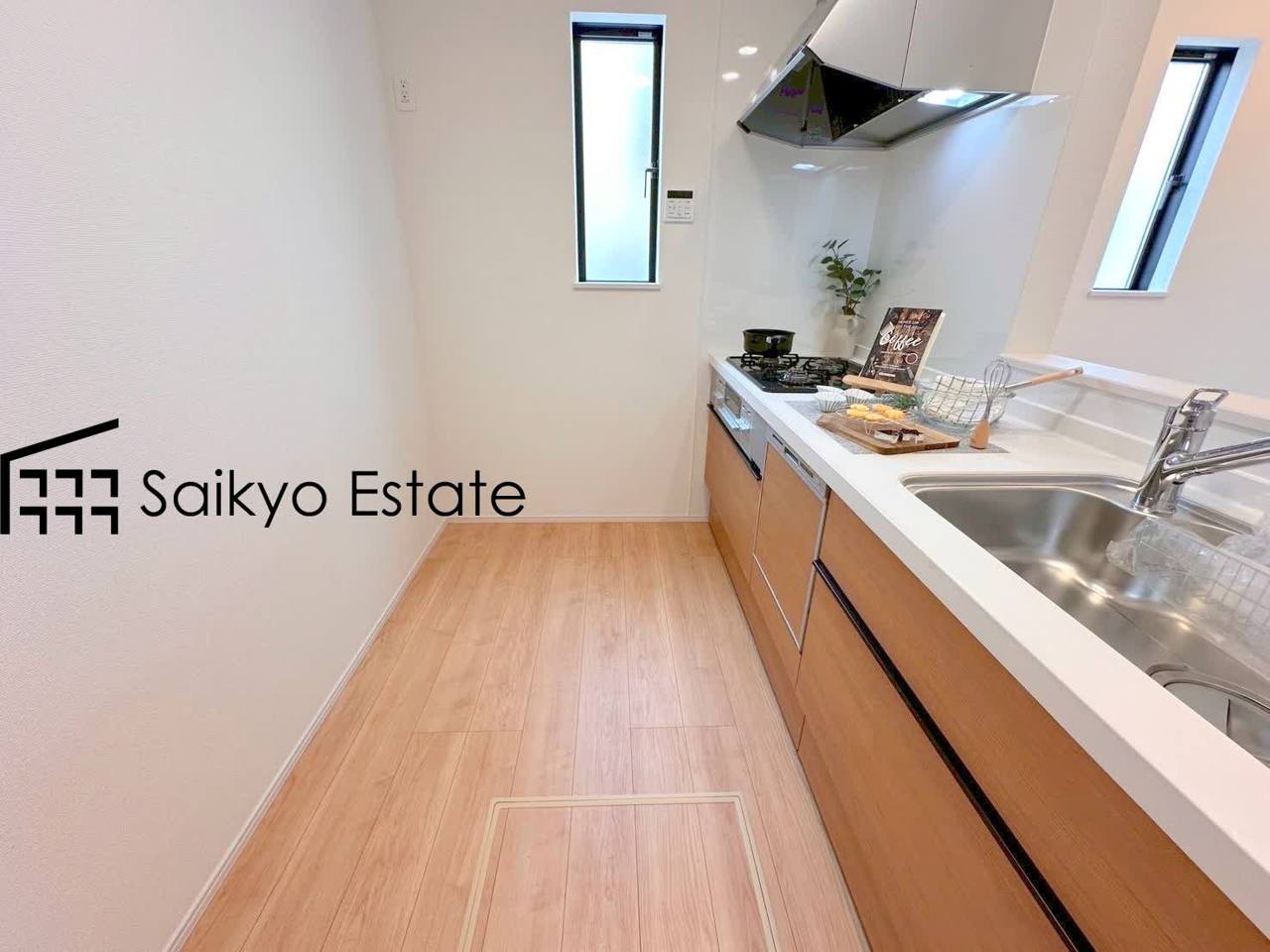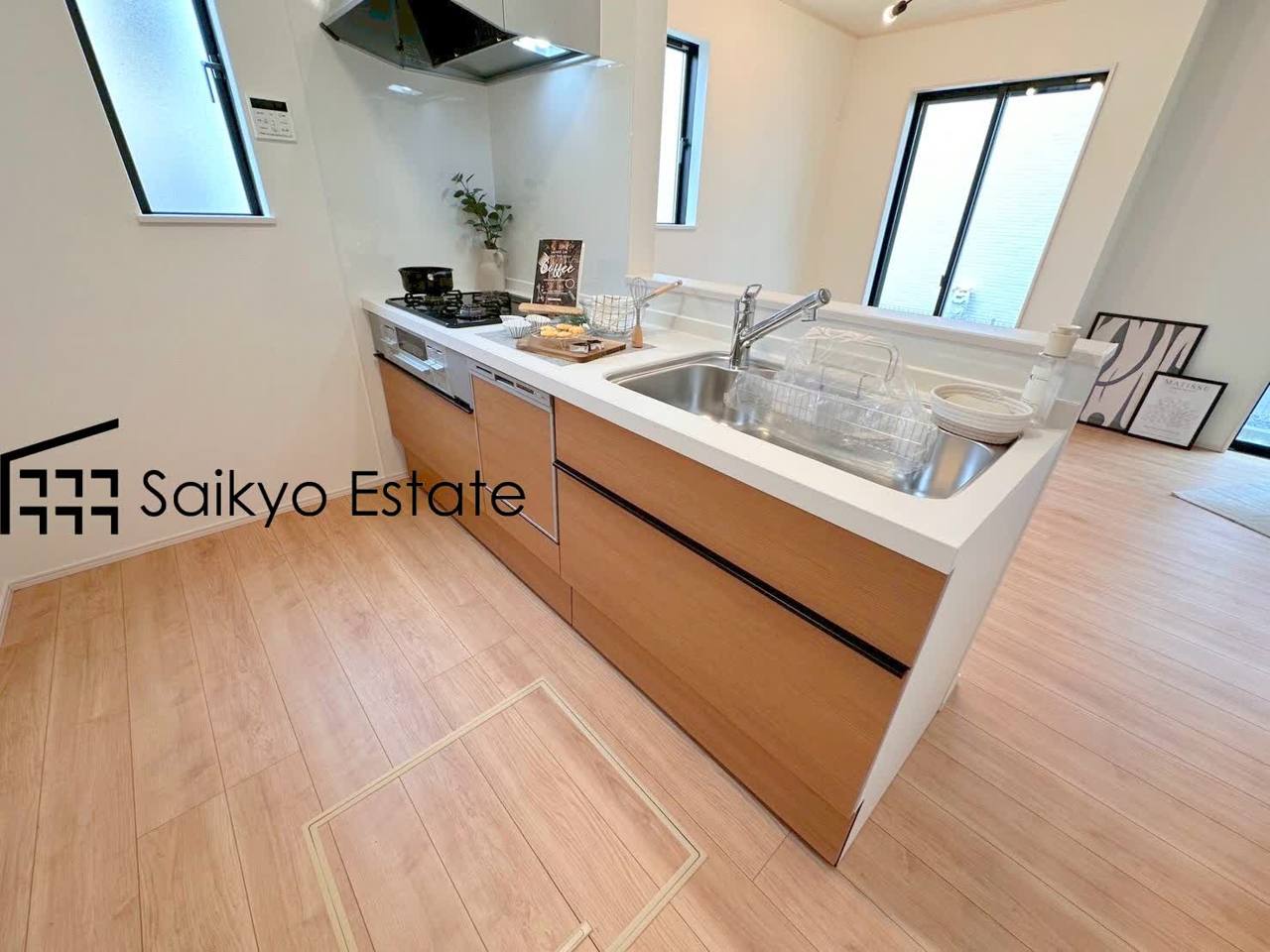 リビングにいる家族とコミュニケーションをとりながら作業が出来る人気のカウンターキッチン。お子様がリビングにいても目が届くので安心です。