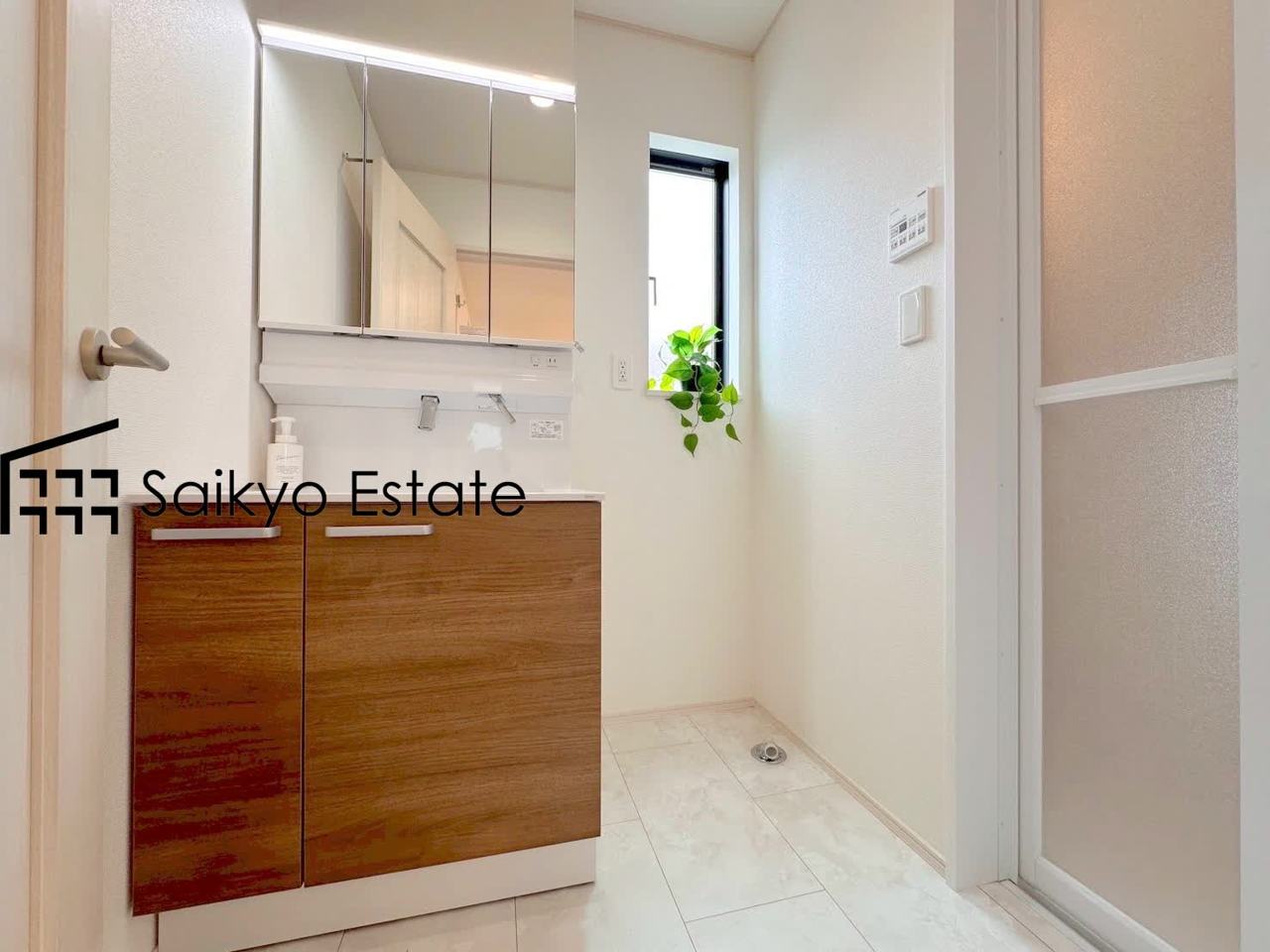 三面鏡付きの洗面化粧台を完備。収納スペースも十分ございますので、ドライヤーなどすっきりと片付きます♪