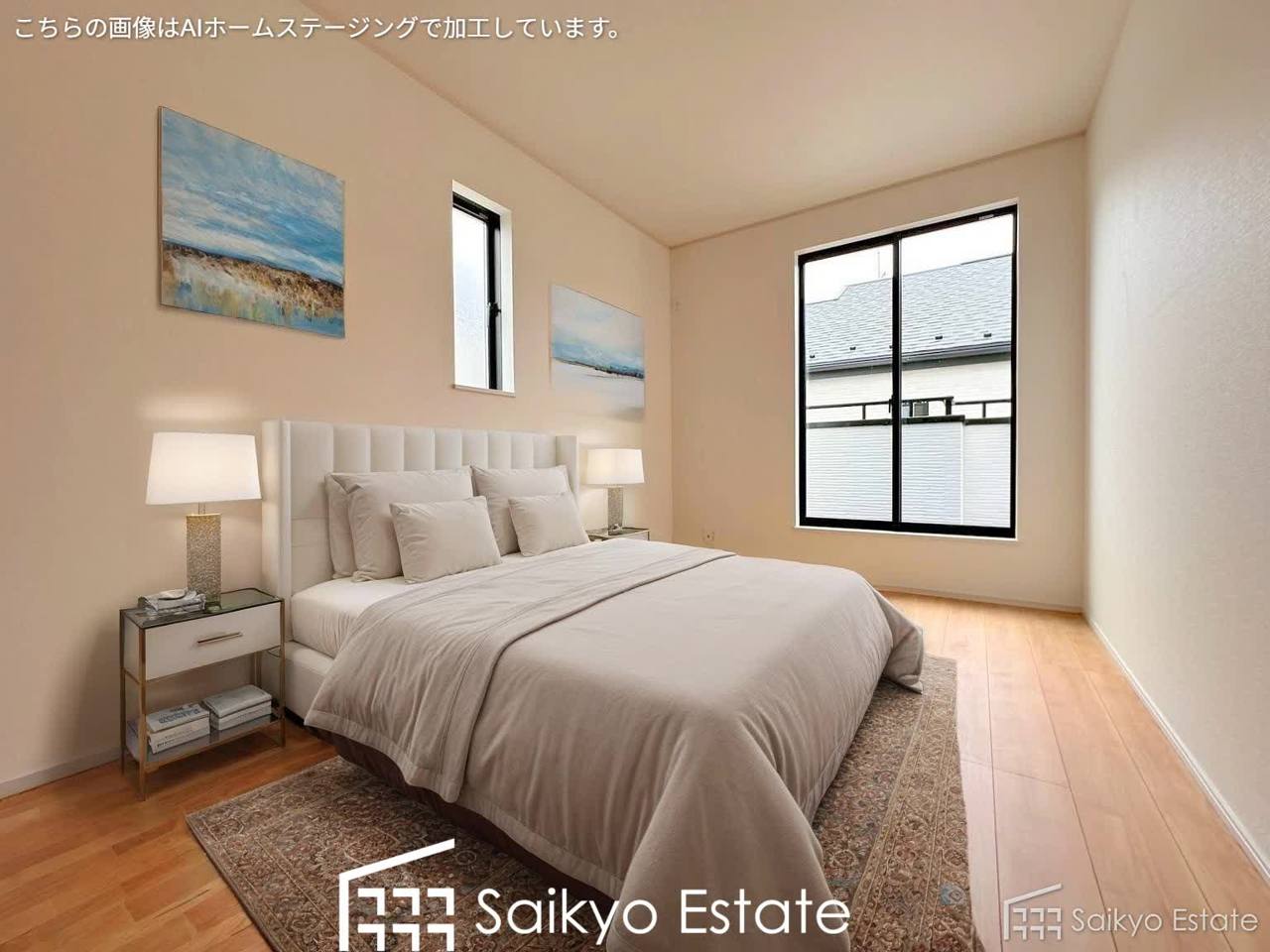 バルコニーに出入りの出来る洋室は、たくさん陽光が差し込む明るい空間です。朝も気持ちよく起きられそうです♪