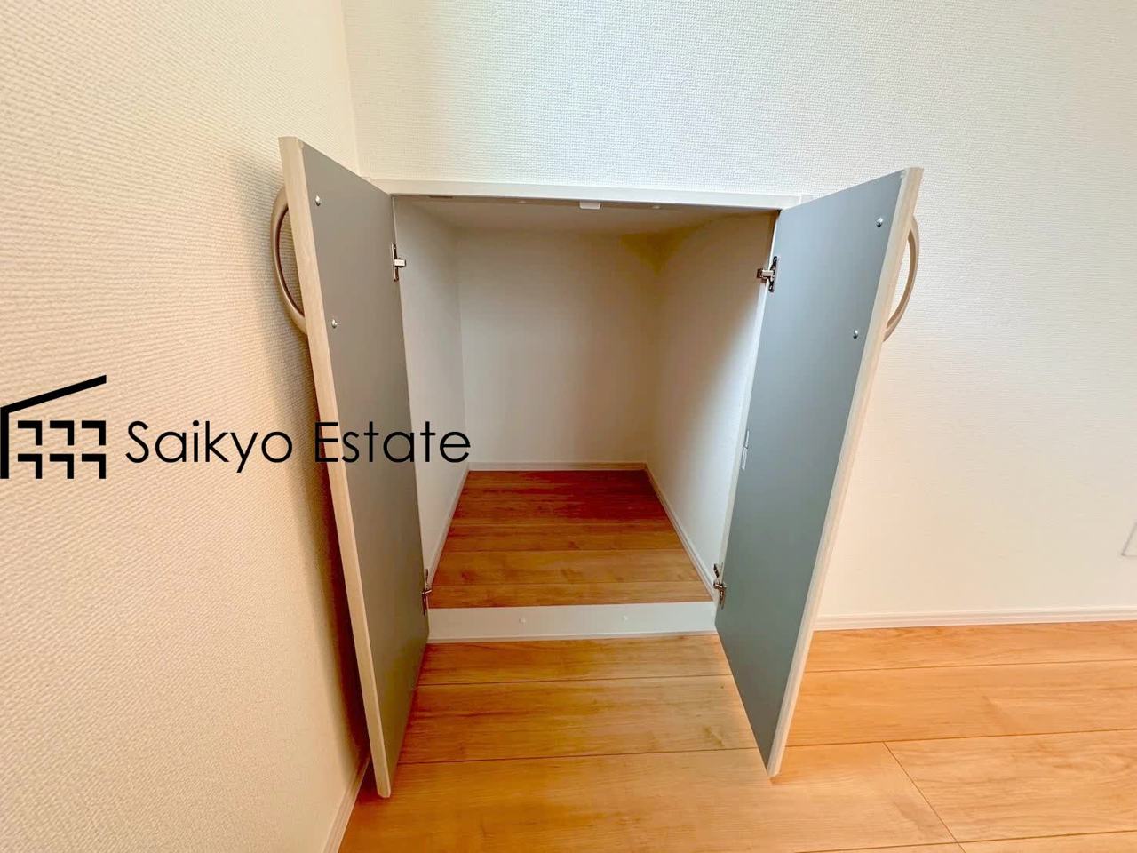 玄関には収納力に優れたシューズボックスがございますので、ご家族みんなの靴が十分入ります!小窓があって明るく換気ができるのも嬉しいですね。