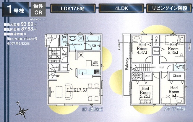 | 間取 | 4LDK (LDK17.5帖、洋室5.75帖、洋室5帖、洋室5.25帖、洋室4.37帖) | ||