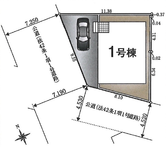 | 権利種類 | 所有権 | 接道 | 西側7.2M公道に9.55M接道 南西側4.5M公道に8.1M接道 |