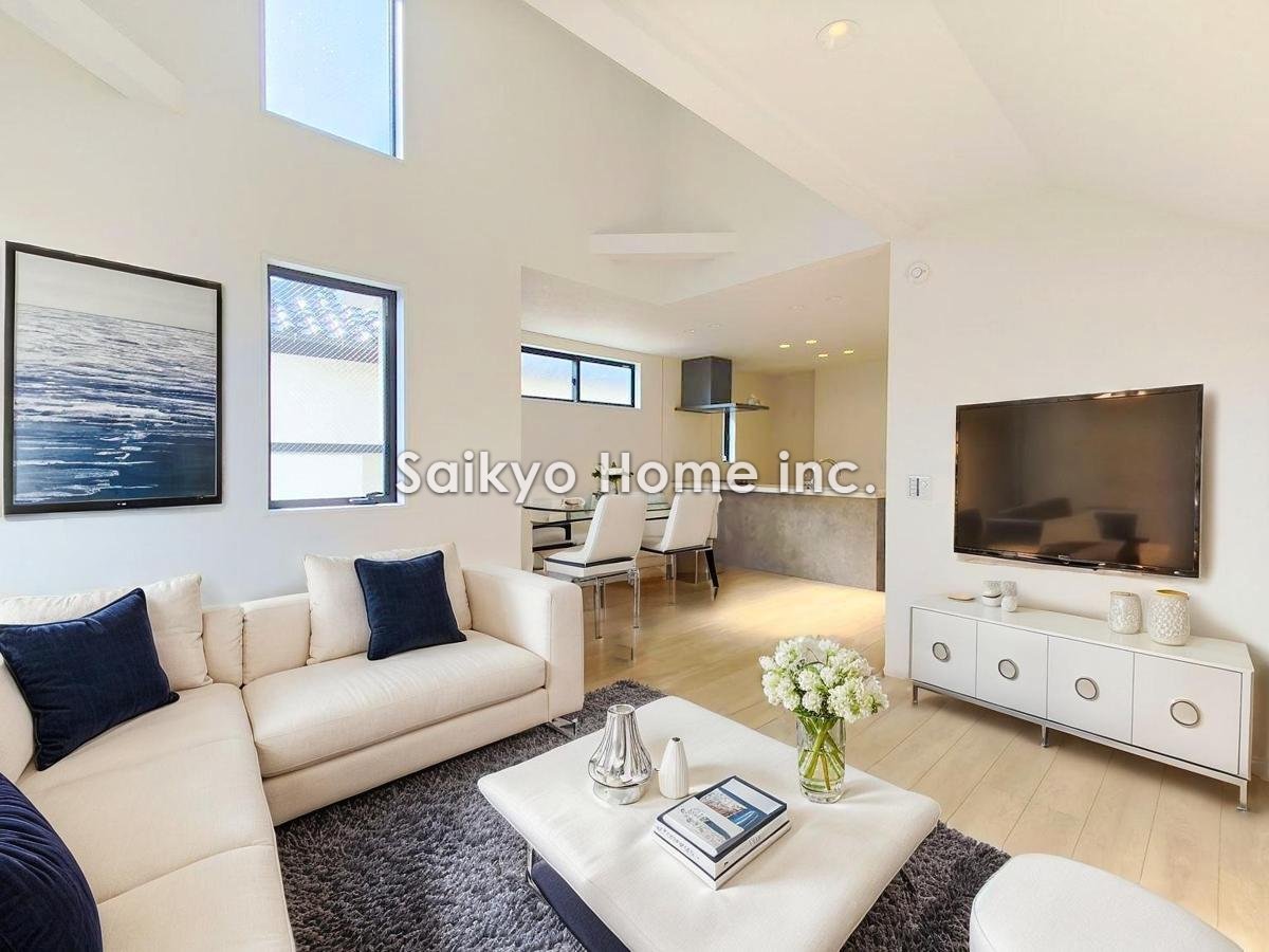 2階リビングのため、日当たり良好!家族が集まるLDKは暖かく快適な空間をご用意しました!※家具等はCG加工しております。図■府中市分梅町1 新築一戸建■