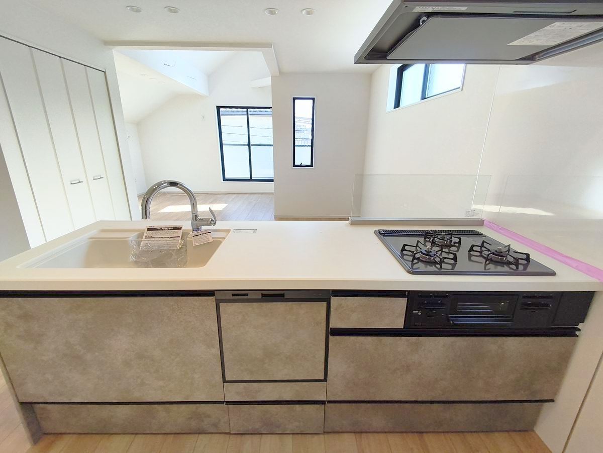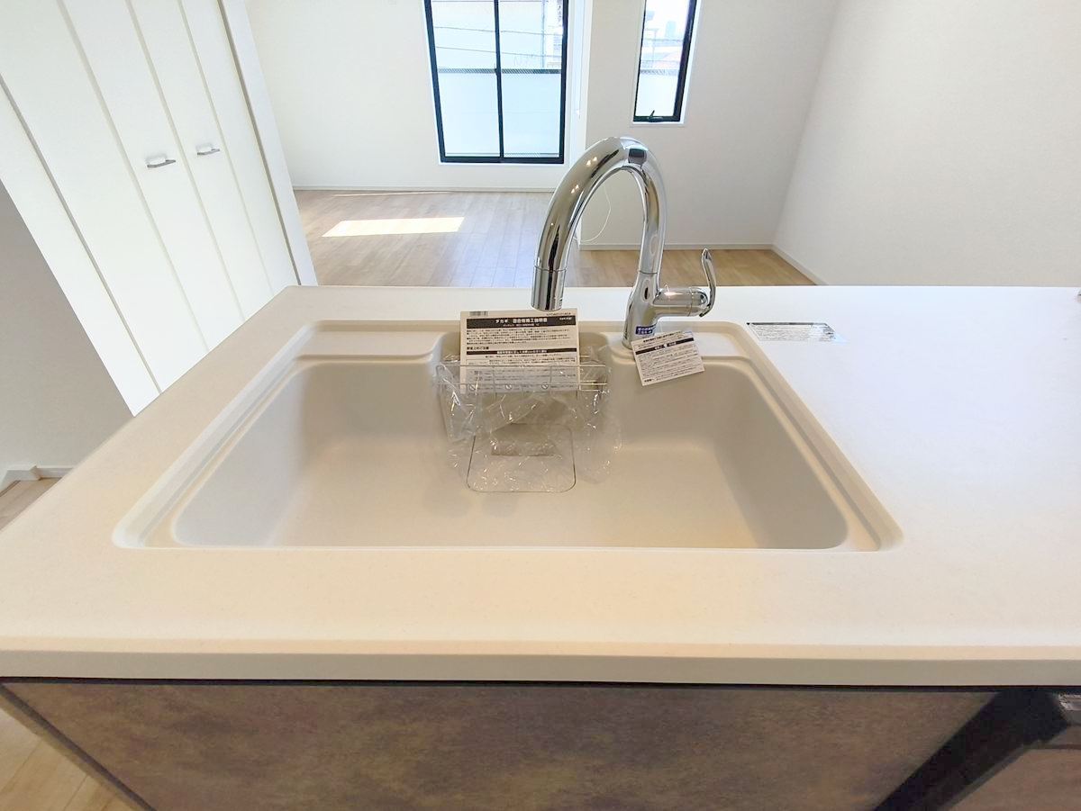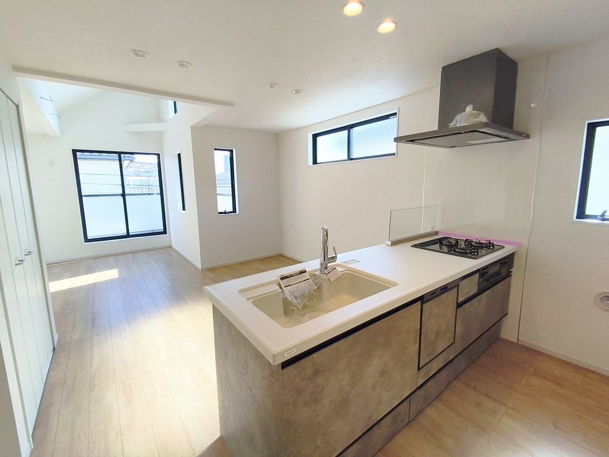 キッチンに立った位置から、リビングにいる家族に目線が届く見守りキッチン! 図■府中市分梅町1 新築一戸建■
