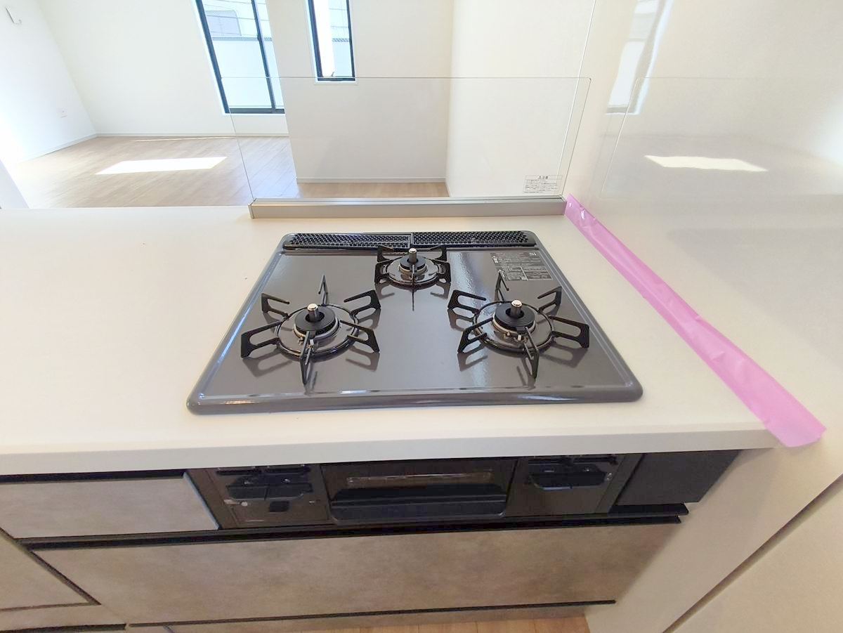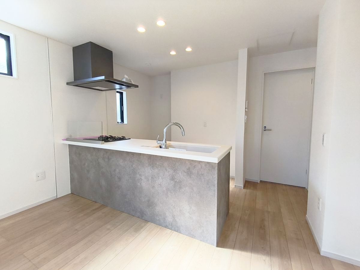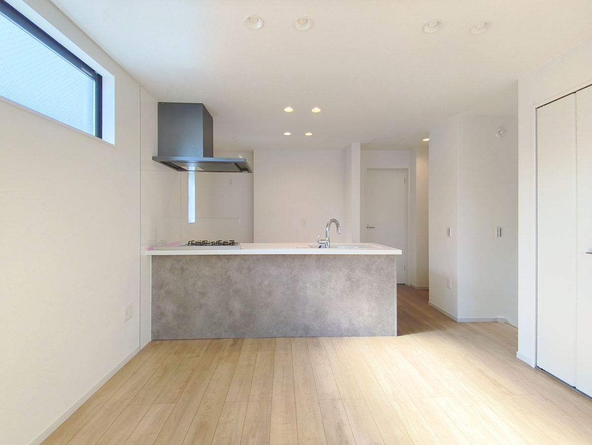 キッチンに立った位置から、リビングにいる家族に目線が届く見守りキッチン! 図■府中市分梅町1 新築一戸建■