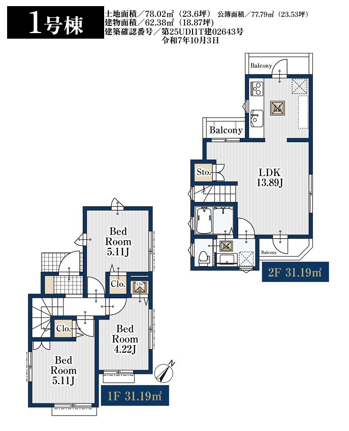 | バルコニー | 南向き | 建築確認番号 | 第25UDI1T建02643号 |