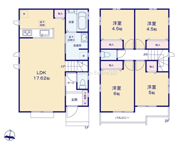 | 間取 | 4LDK (LDK17.6帖、洋室6帖、洋室5帖、洋室4.5帖、洋室4.5帖) | ||