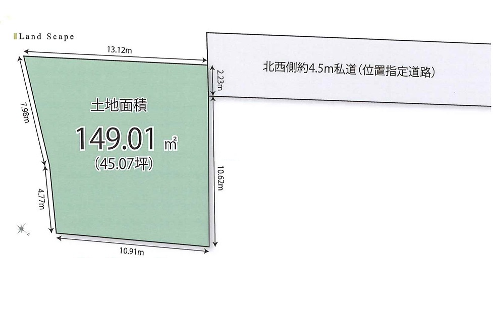 | 土地面積 | 149.01m² (私道19.93m²別に有、私道持分比率:1/1) | ||