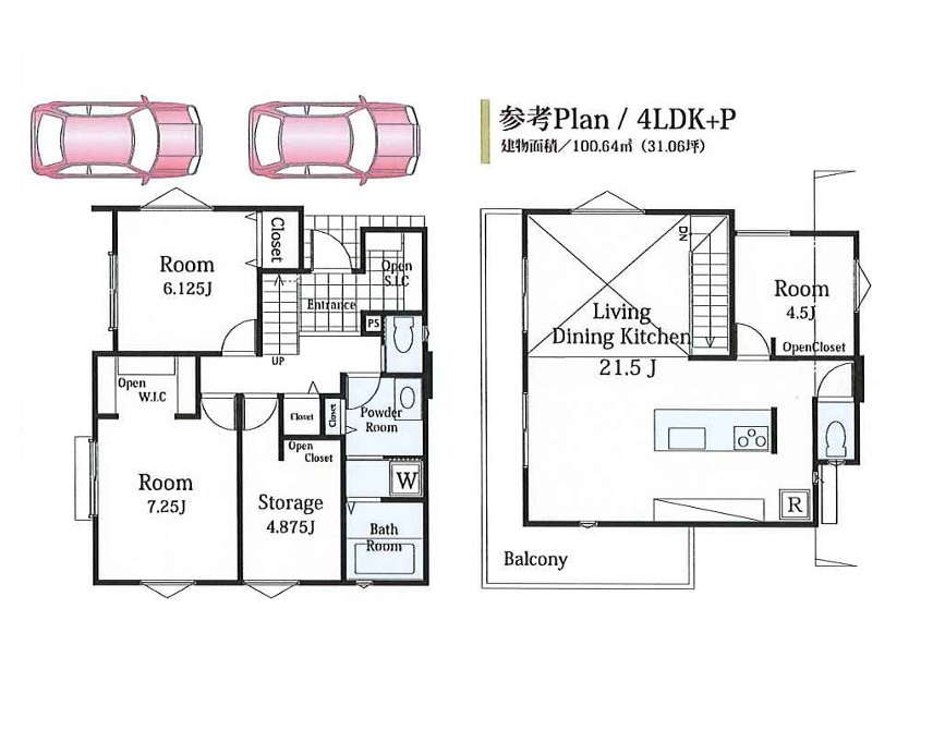 ◆POINT2◆ 参考プラン間取りございます。LDK広々21.5帖!居室4部屋、WICやSIC、ホール収納など豊富な収納となっております