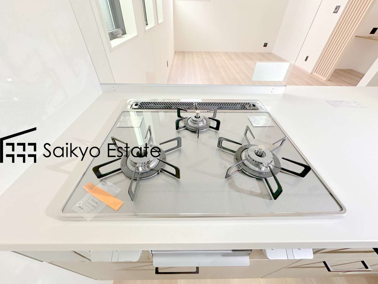 【施工例】3口ガスコンロシステムはたくさんの料理が同時に作れて便利な上、凹凸が少ないフラットトップなのでお掃除も楽々です。