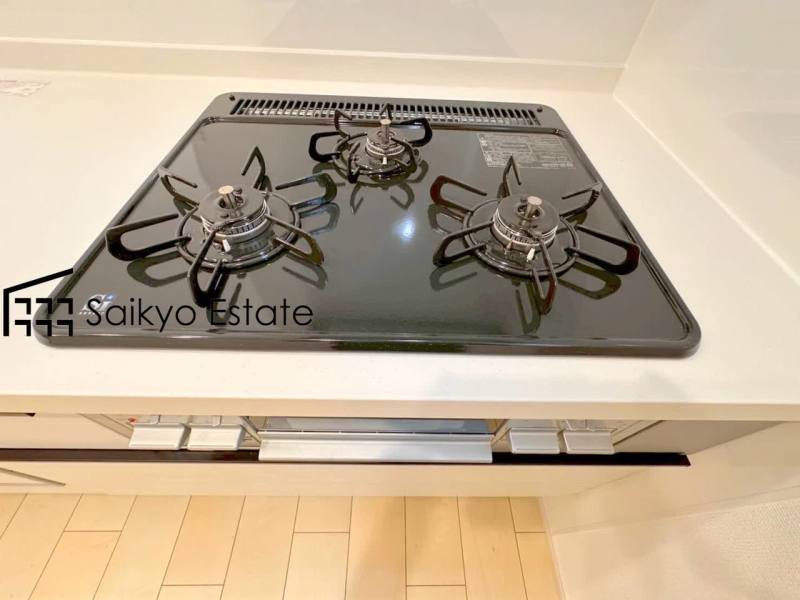 「3口ガスコンロシステム」はたくさんの料理が同時に作れて便利な上、凹凸が少ないフラットトップなのでお掃除も楽々です。