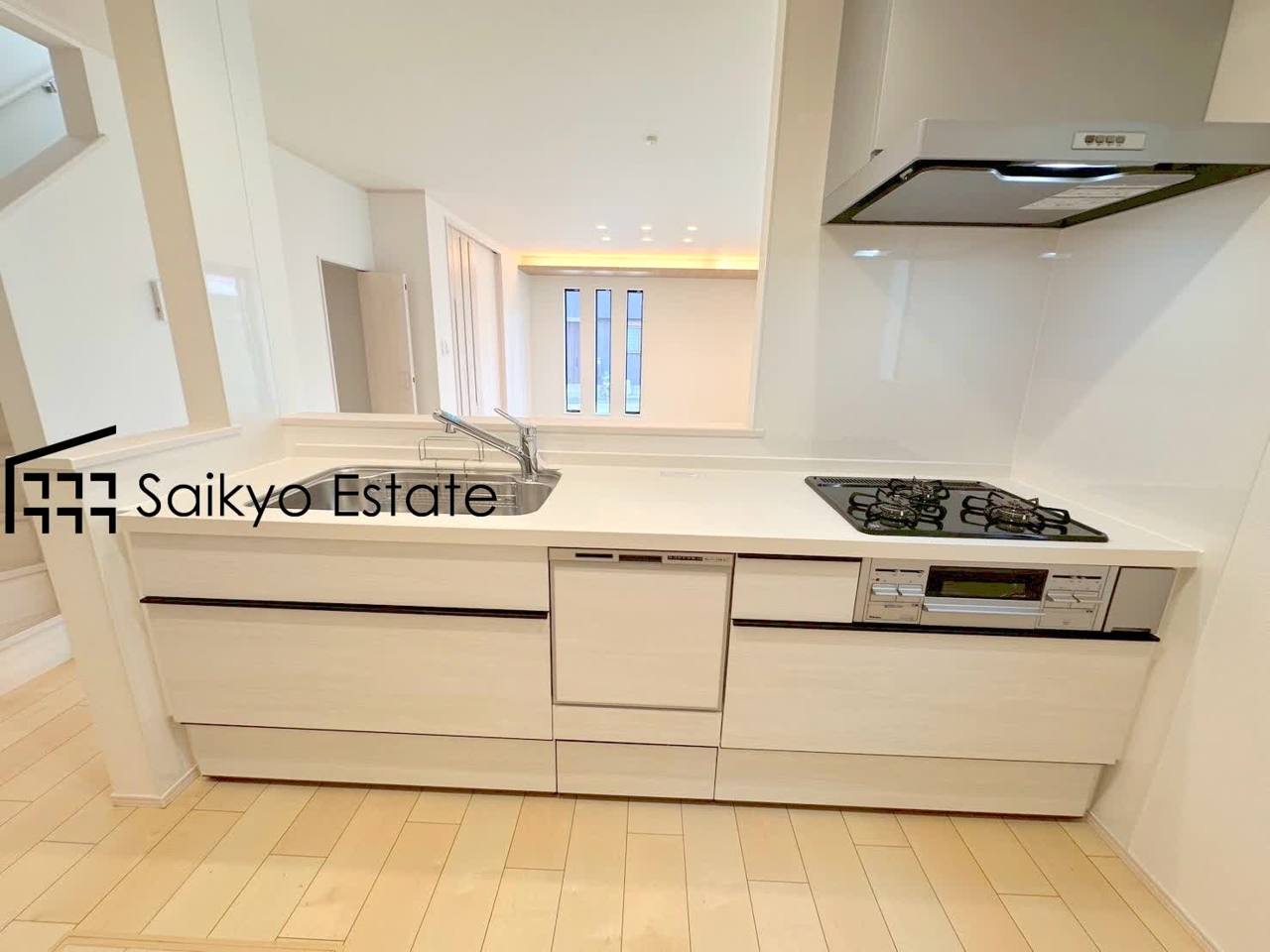 リビングにいる家族とコミュニケーションをとりながら作業が出来る人気のカウンターキッチン。お子様がリビングにいても目が届くので安心です。