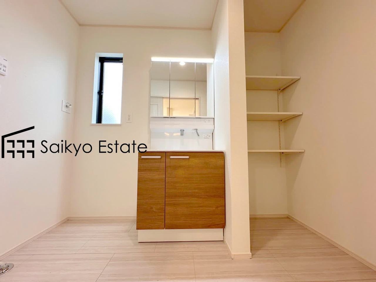 洗面所には可動棚による収納スペースがございますので、リネン庫としてお使いいただけます。
