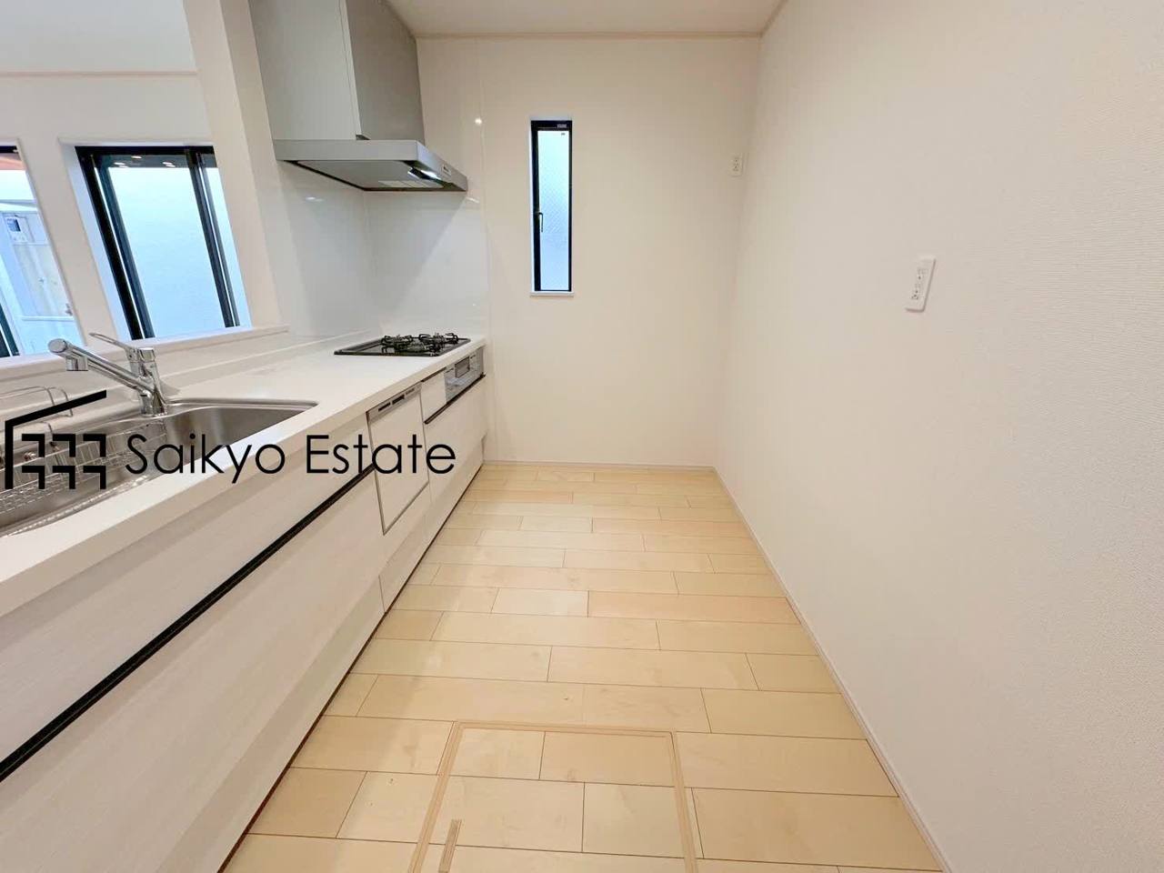 キッチンスペースは冷蔵庫や食器棚などを置くスペースが十分に確保されております。オシャレなカップボードを置きたくなりますね♪