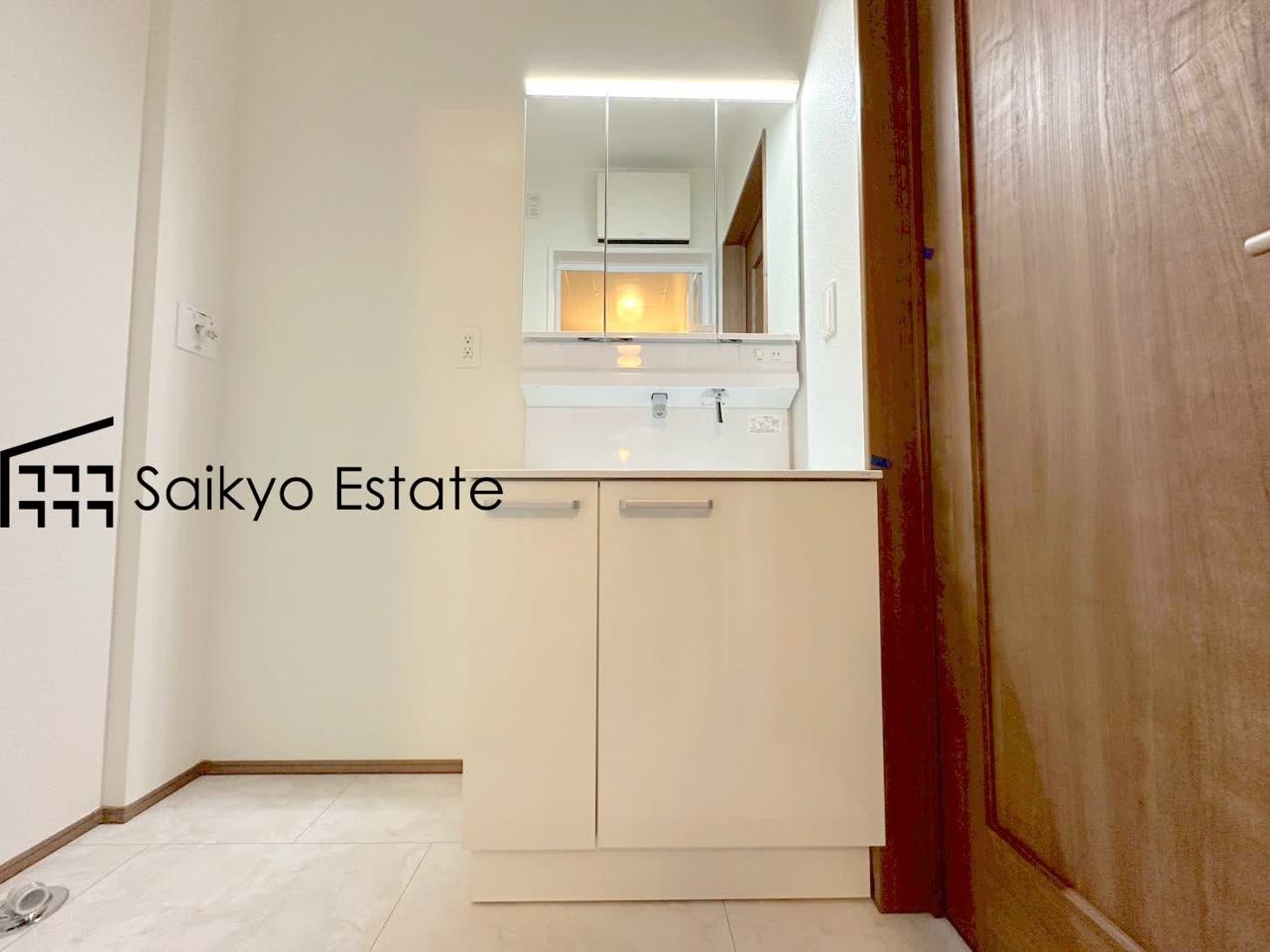 三面鏡付きの洗面化粧台を完備。収納スペースも十分ございますので、ドライヤーなどすっきりと片付きます♪