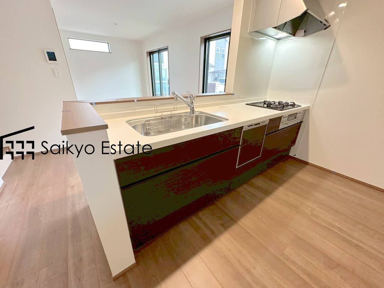 リビングにいる家族とコミュニケーションをとりながら作業が出来る人気のカウンターキッチン。お子様がリビングにいても目が届くので安心です。