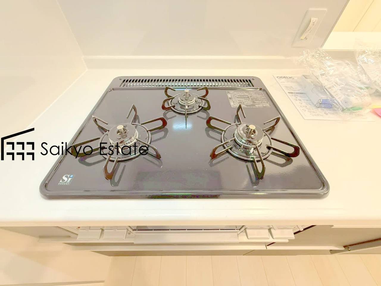 「3口ガスコンロシステム」はたくさんの料理が同時に作れて便利な上、凹凸が少ないフラットトップなのでお掃除も楽々です。
