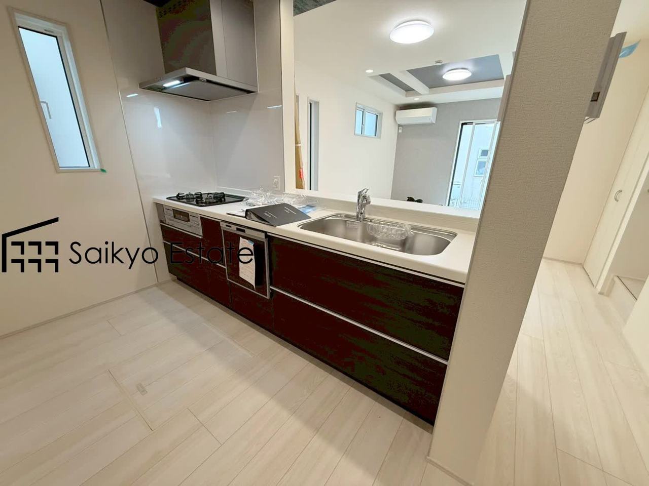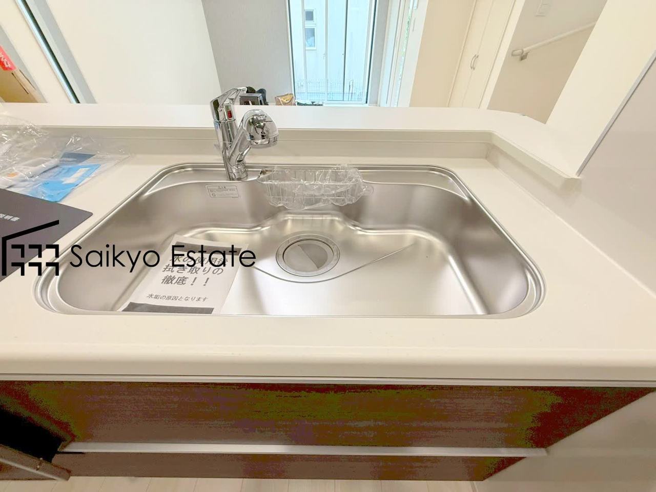 リビングにいる家族とコミュニケーションをとりながら作業が出来る人気のカウンターキッチン。お子様がリビングにいても目が届くので安心です。