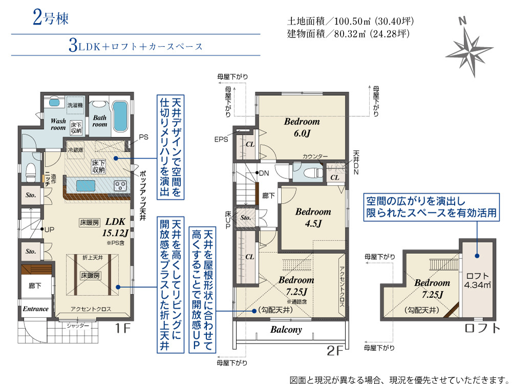 - ※完成予想図はいずれも外構、植栽、外観等実際のものとは多少異なることがあります。