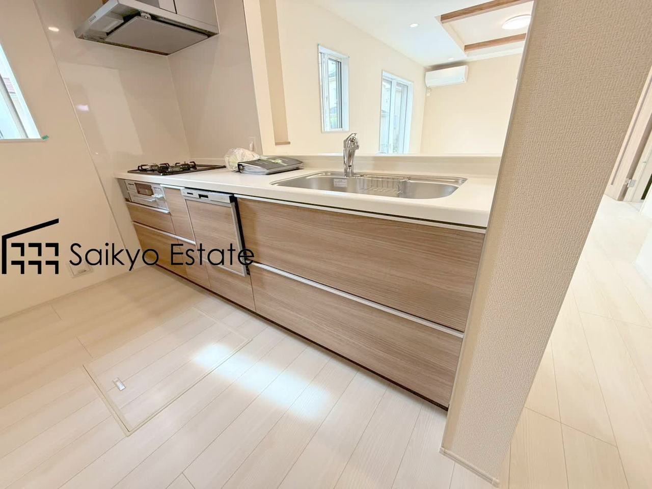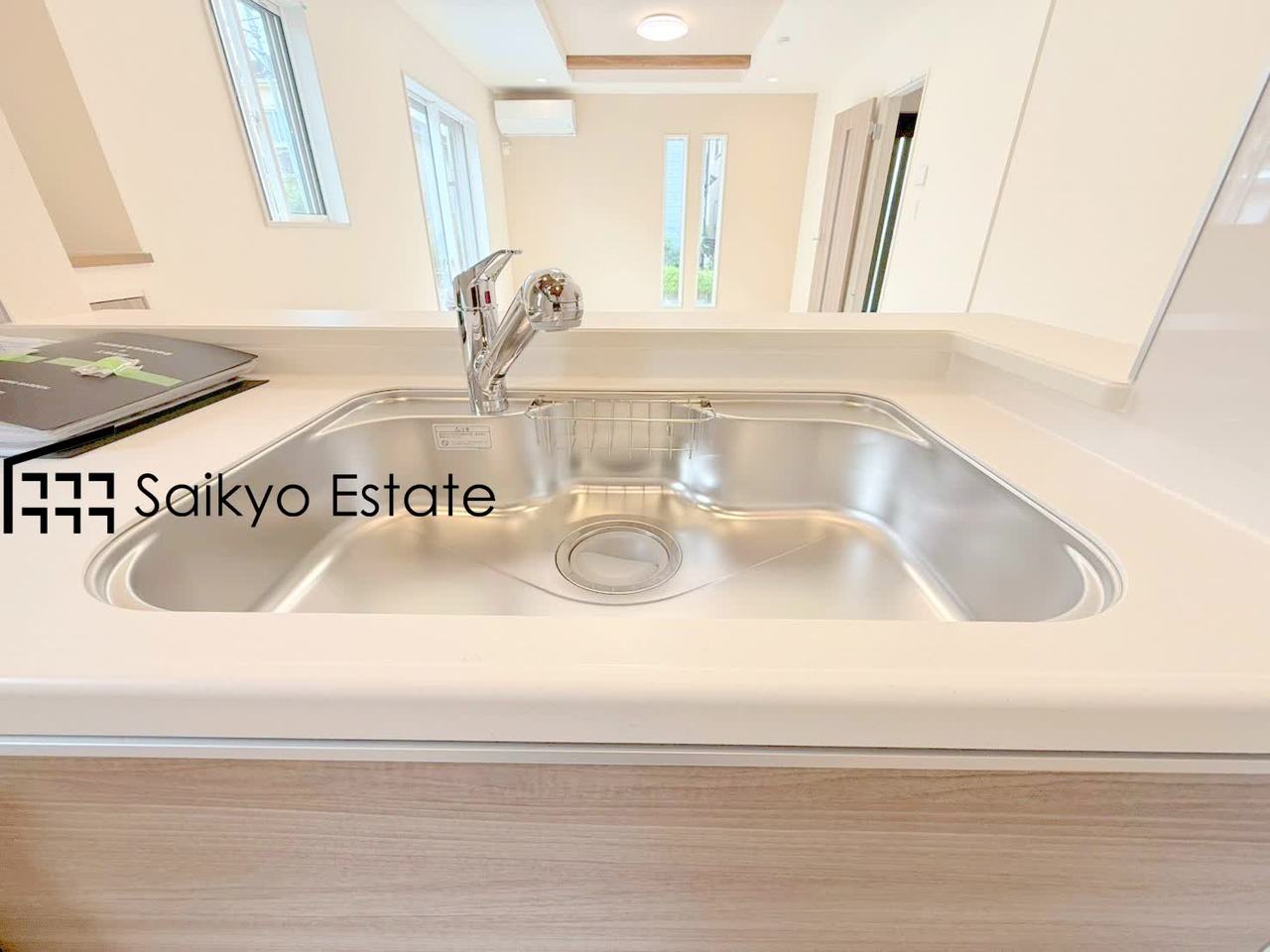 リビングにいる家族とコミュニケーションをとりながら作業が出来る人気のカウンターキッチン。お子様がリビングにいても目が届くので安心です。