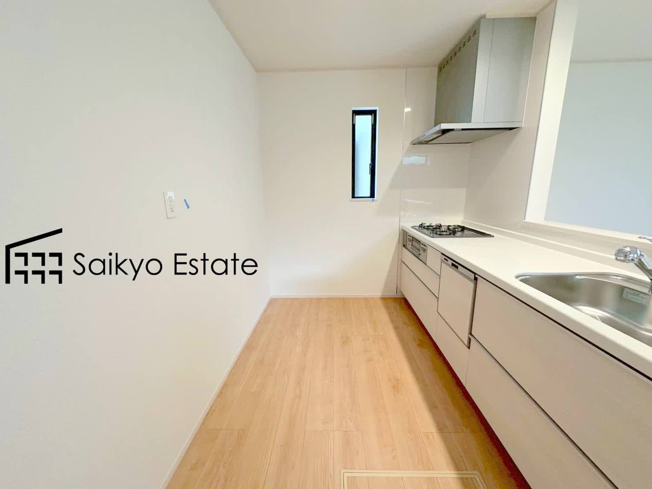キッチンスペースは冷蔵庫や食器棚などを置くスペースが十分に確保されております。オシャレなカップボードを置きたくなりますね♪