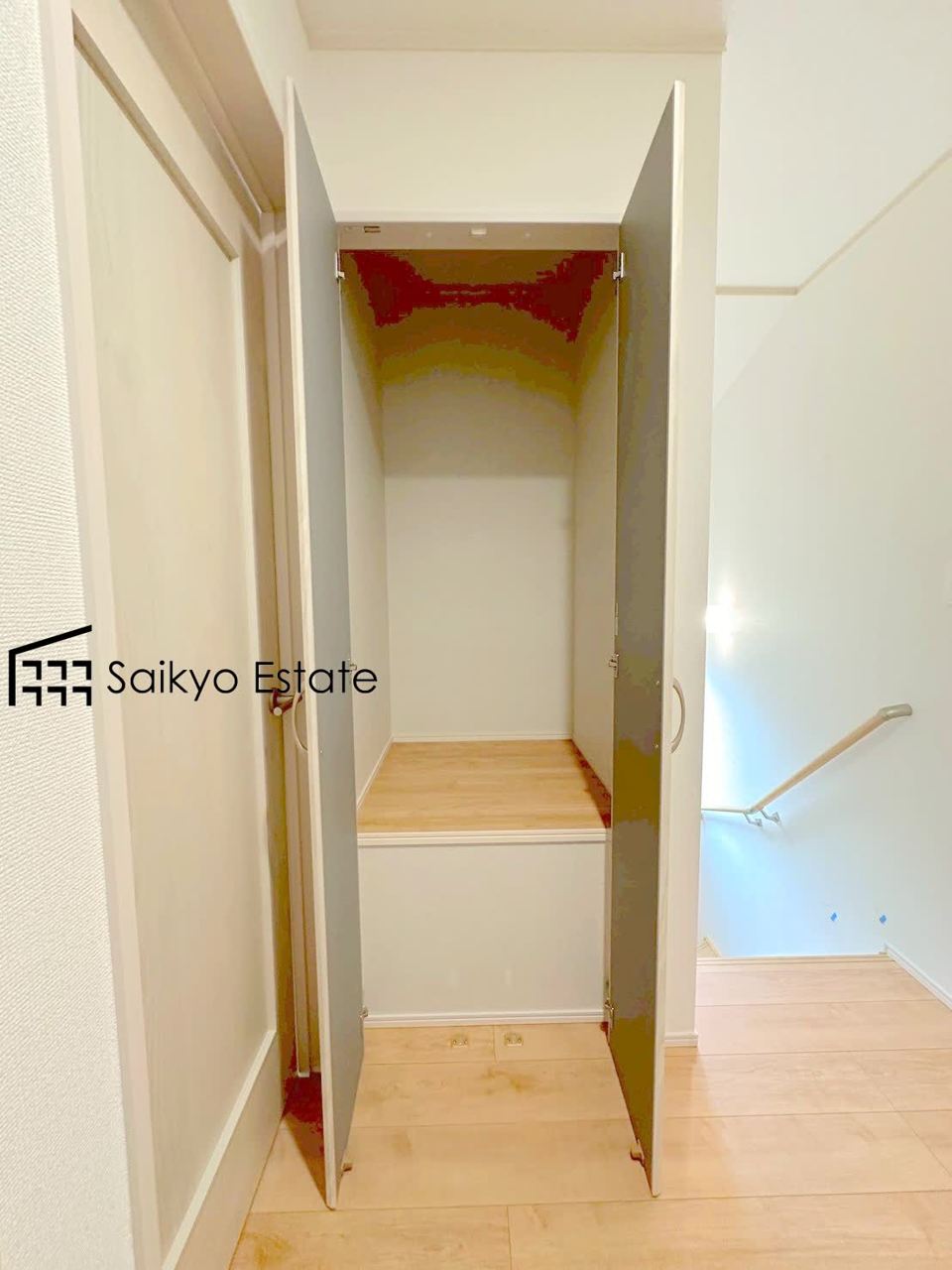 2階ホール部分には階段上を利用した収納スペースがございます。日用品や使用頻度の低い物などの収納として使える便利な空間です。