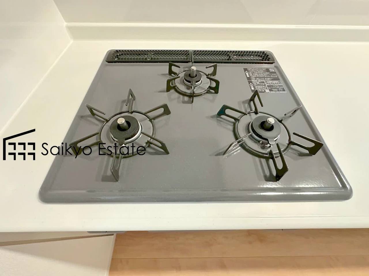 「3口ガスコンロシステム」はたくさんの料理が同時に作れて便利な上、凹凸が少ないフラットトップなのでお掃除も楽々です。