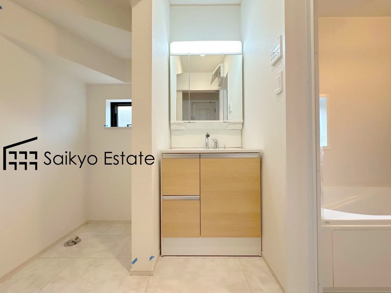 三面鏡付きの洗面化粧台を完備。収納スペースも十分ございますので、ドライヤーなどすっきりと片付きます♪