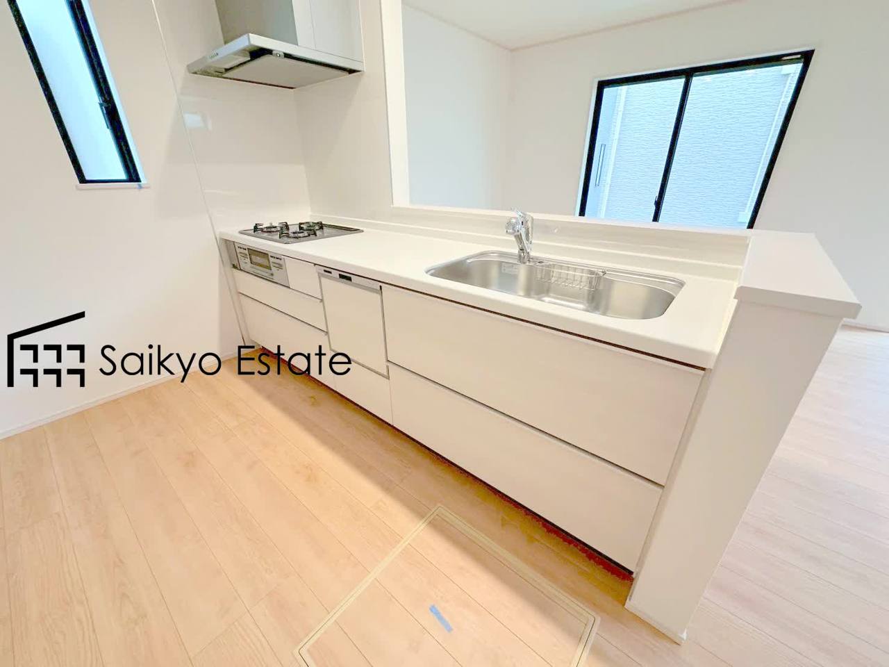 リビングにいる家族とコミュニケーションをとりながら作業が出来る人気のカウンターキッチン。お子様がリビングにいても目が届くので安心です。
