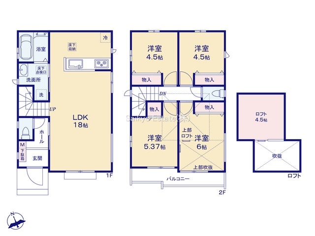 | 間取 | 4LDK (LDK18帖、洋室6帖、洋室5.37帖、洋室4.5帖、洋室4.5帖) | ||