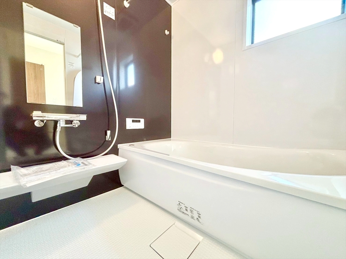 浴室はゆったりサイズの一坪タイプ。半身浴も楽しめる浴槽は環境に優しい節水タイプを採用。洗い場の床は、乾きやすく滑りにくい快適使用。■府中市白糸台3 新築一戸建て■